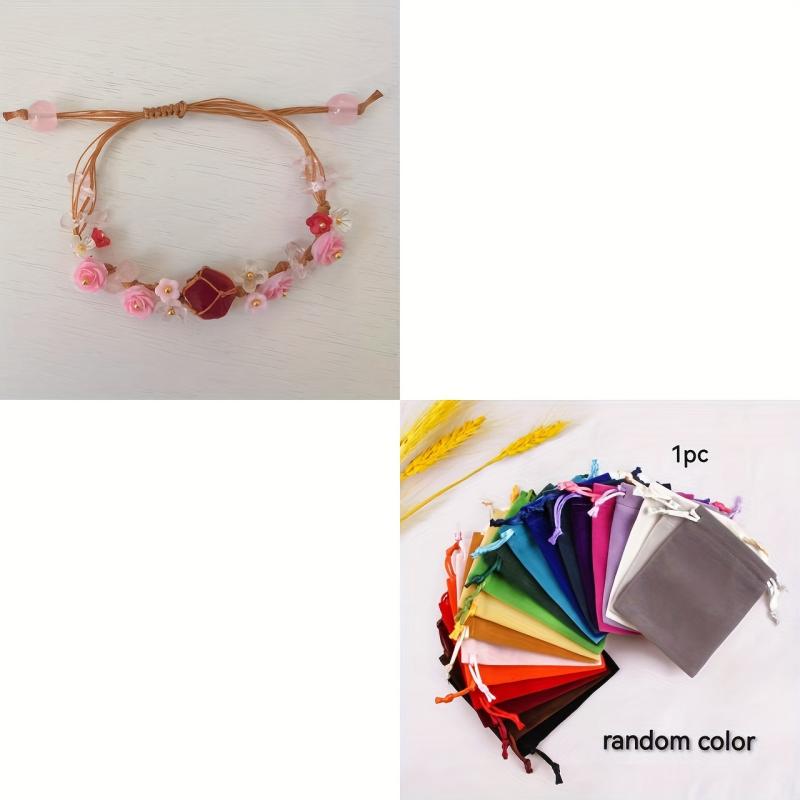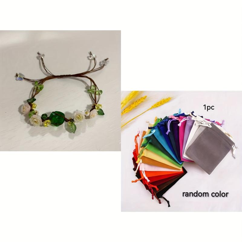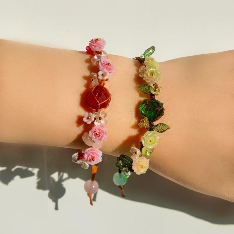 This hand-woven bracelet features intricate rose and camellia beads, adding a touch of charm to your accessories. Comes with a random flannel drawstring bag for easy storage and gifting.