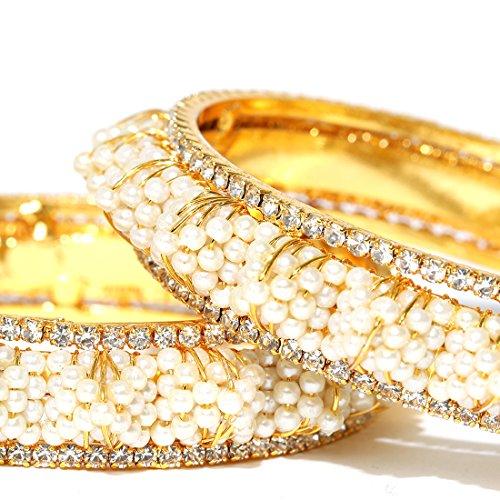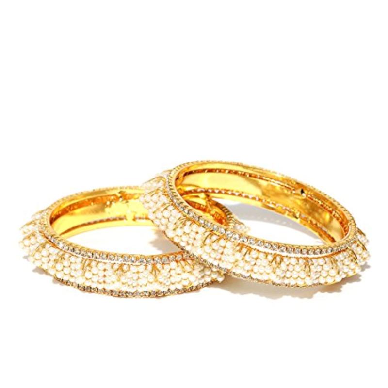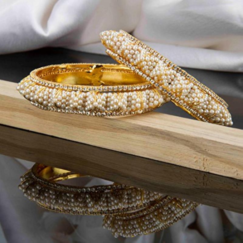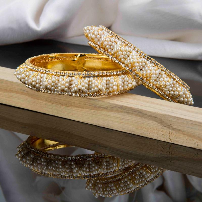 Elegant set of 2 bangles plated with a traditional design, adorned with handcrafted pearls for a timeless and sophisticated look.