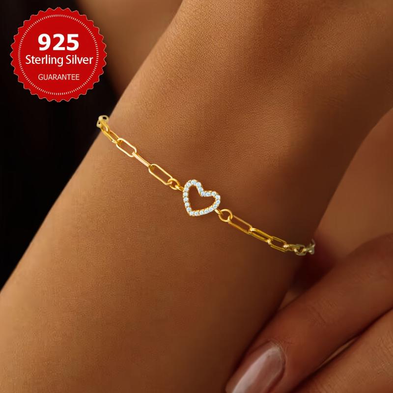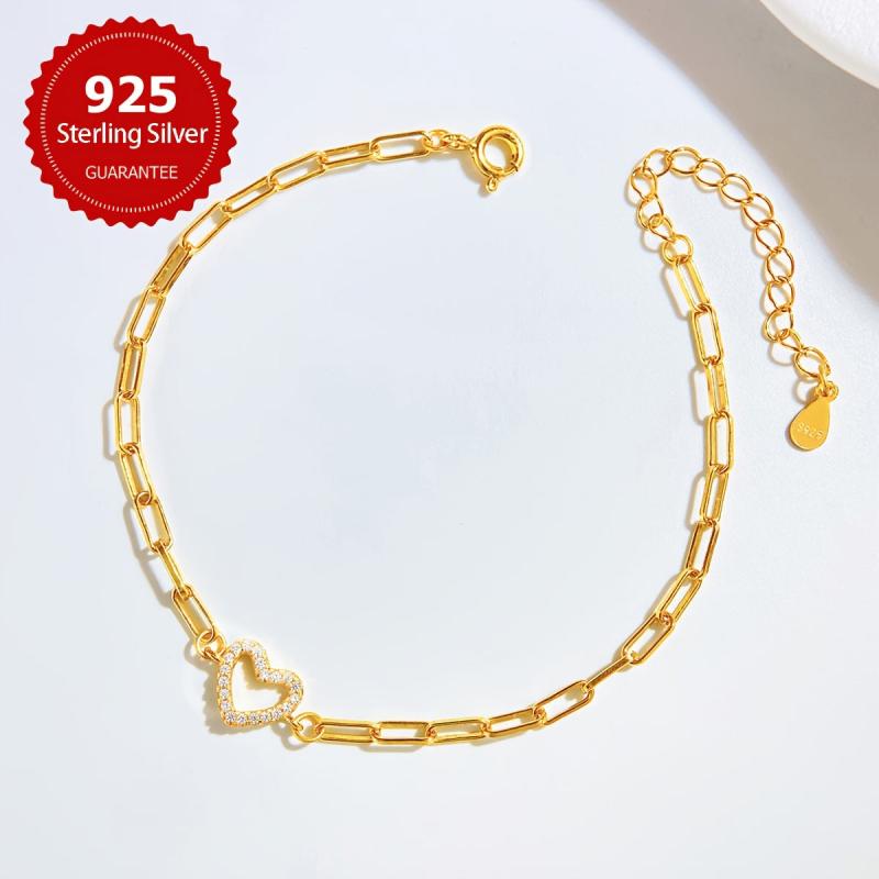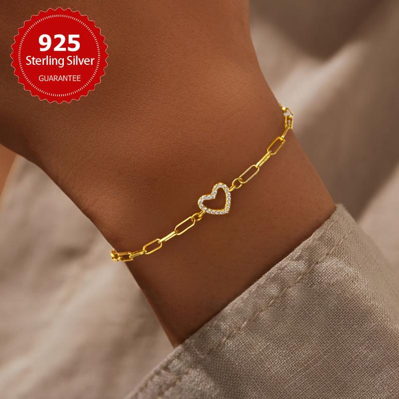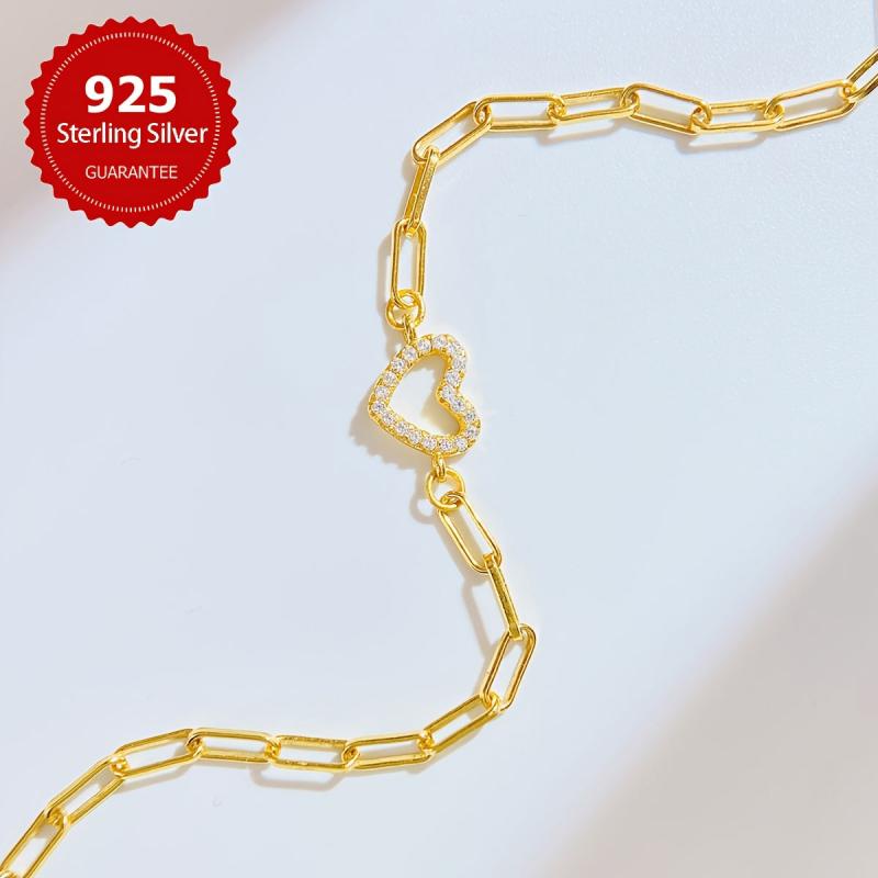 This beautiful s925 Sterling Silver and Golden Heart Chain Bracelet is the perfect accessory for women. It is a fine piece of jewelry that will elevate any outfit and make a wonderful gift for any occasion.