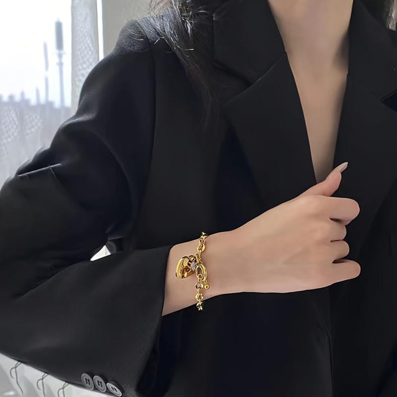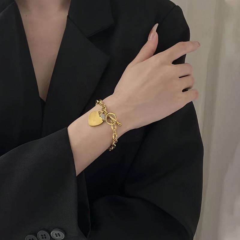 Elevate your casual attire with this titanium steel love heart bracelet featuring a sparkling cubic zirconia. The OT clasp ensures easy wear and a secure fit.