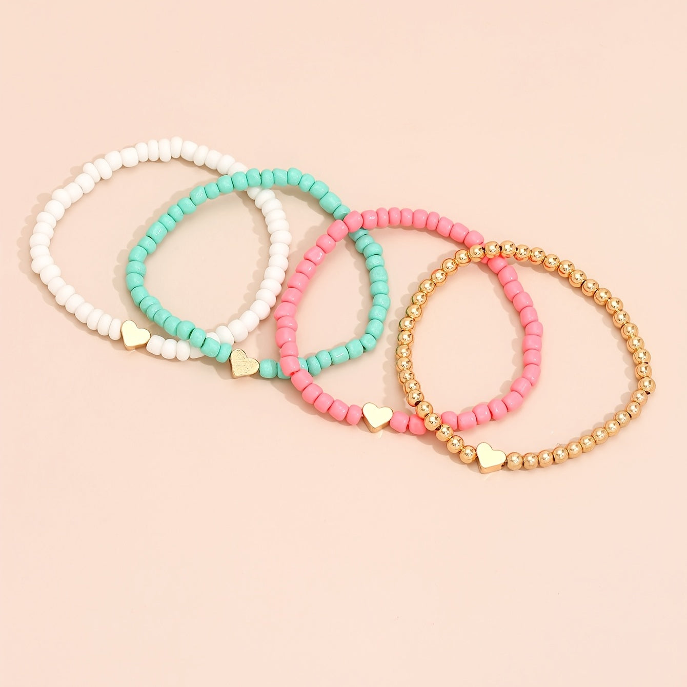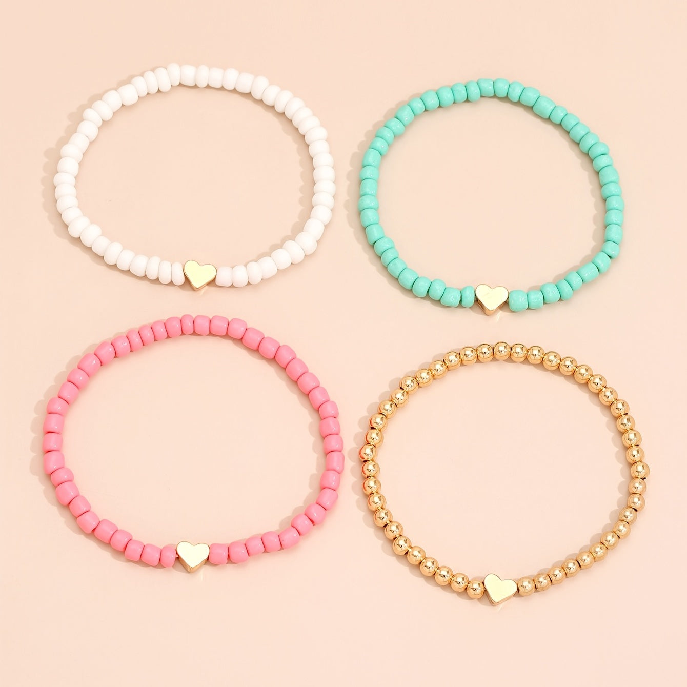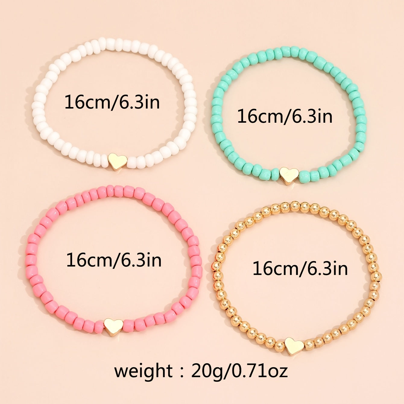 Add a touch of boho style to your daily wear with this set of elastic beaded bracelets featuring heart charms. Perfect for women and girls, these candy-colored bracelets are stackable and make a fun accessory for any outfit.