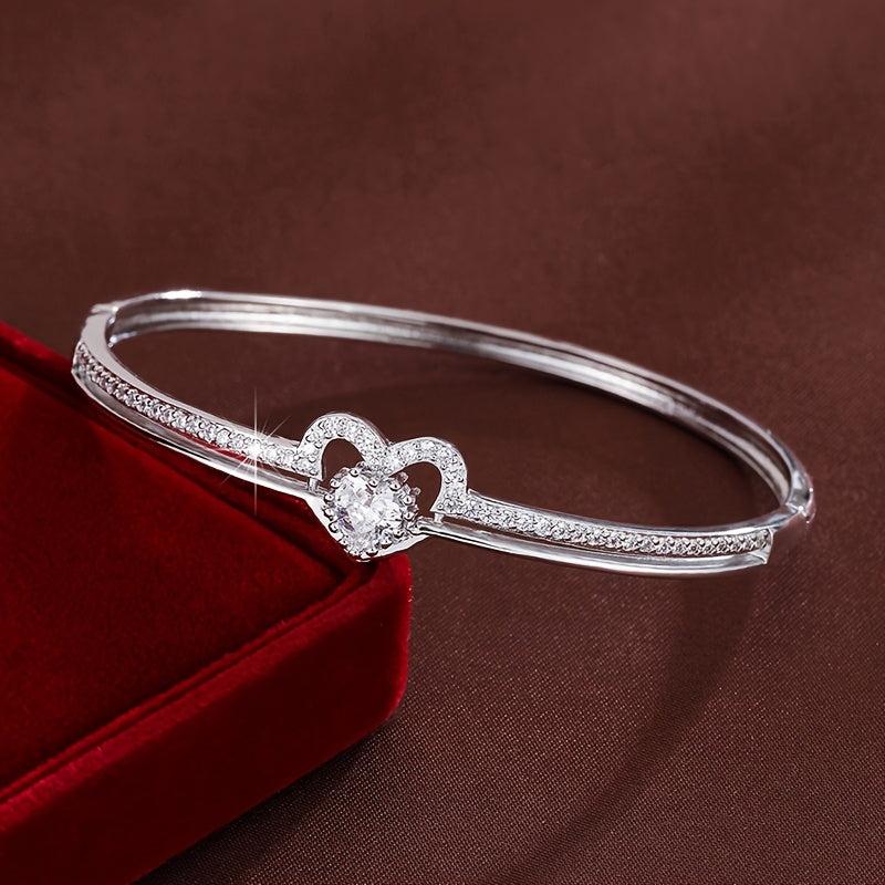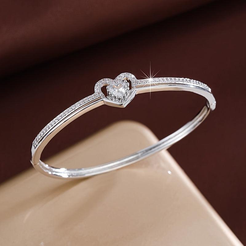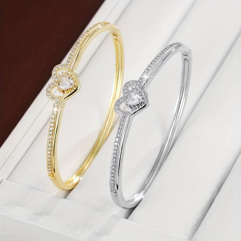 Elevate your casual attire with this minimalist heart-shaped bracelet. Made with synthetic zirconia and golden plating, it's a sophisticated accessory and a great gift idea for women.