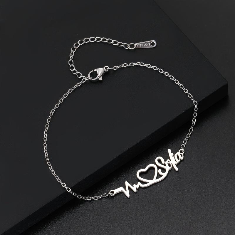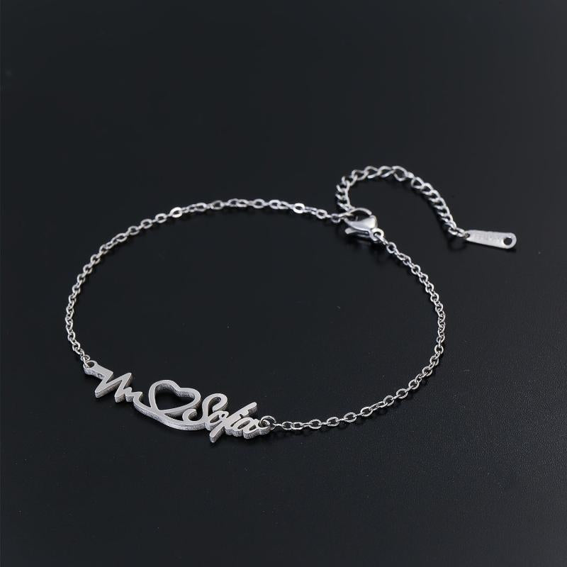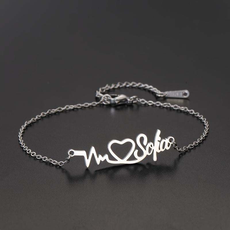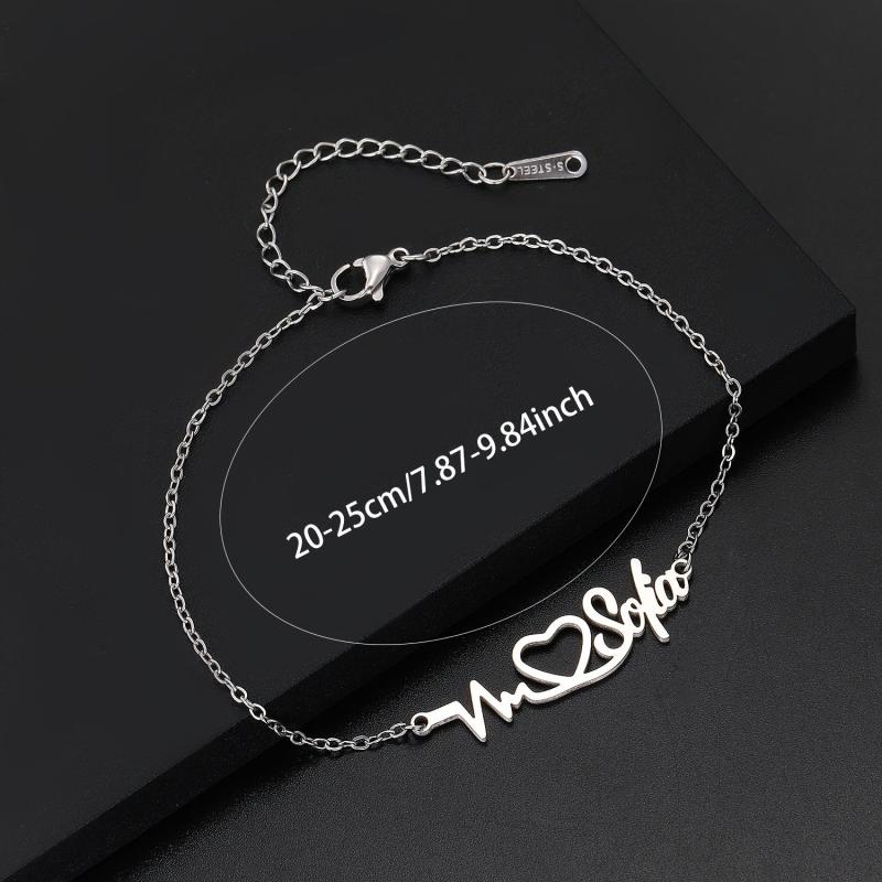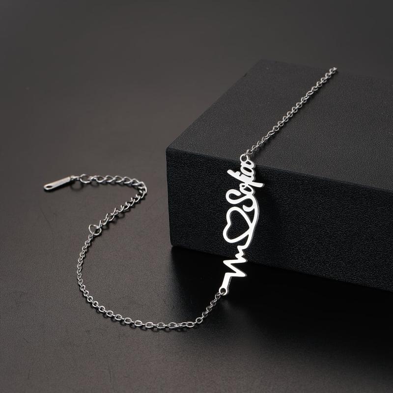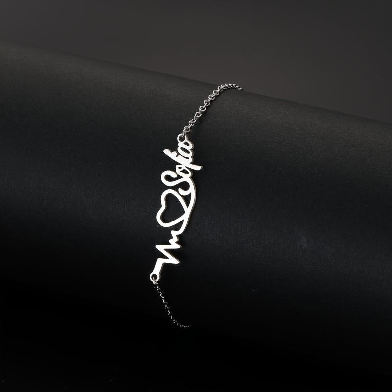 This personalized bracelet features a romantic heartbeat wave design with customized name. It is adjustable to fit any wrist size, making it a perfect gift for your loved one.