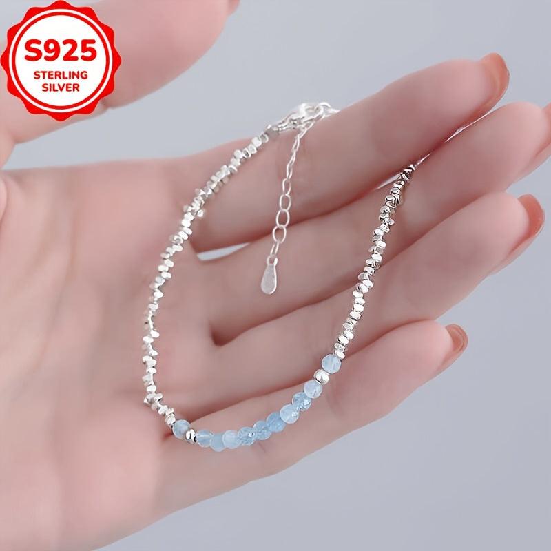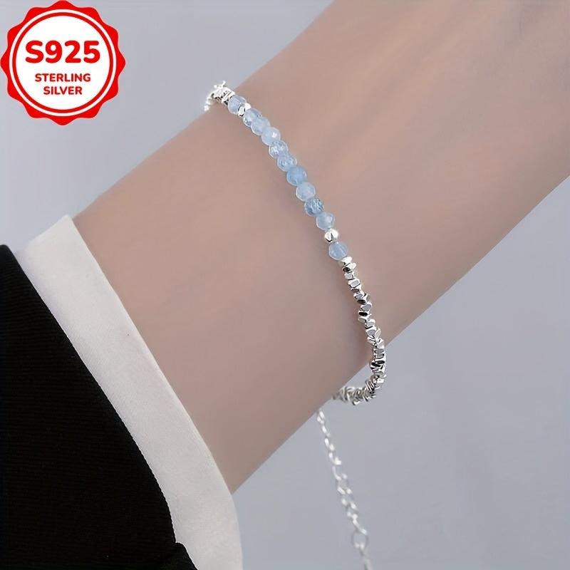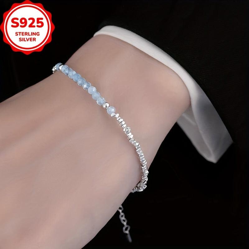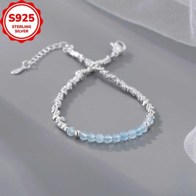 Elegant and versatile aquamarine bracelet designed for women. Handcrafted with geometric irregular shapes, this piece is perfect for all seasons. It comes with anti-oxidation properties for durability.
