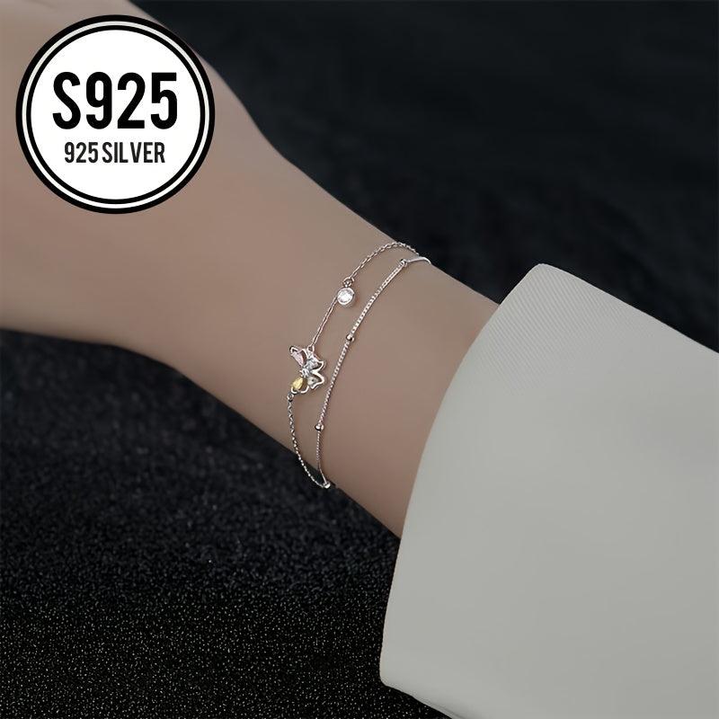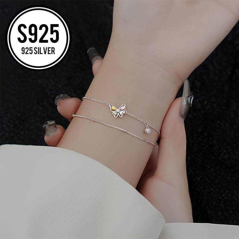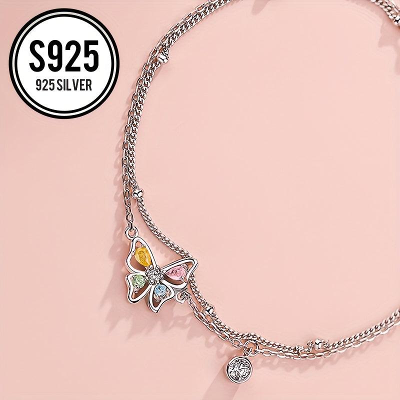 This double layer bracelet features colorful butterfly charms and is hypoallergenic for sensitive skin.