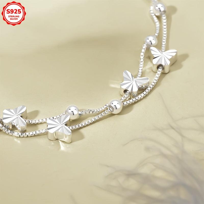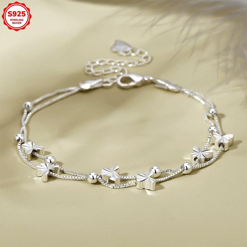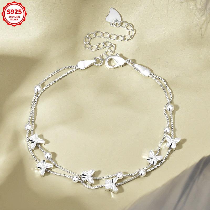 This bracelet is perfect for women with sensitive skin as it is hypoallergenic. The double layer design features butterfly and round beads, making it a thoughtful gift. Its anti-oxidation properties ensure lasting beauty, and it comes in a gift box.