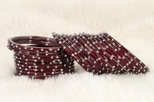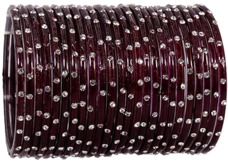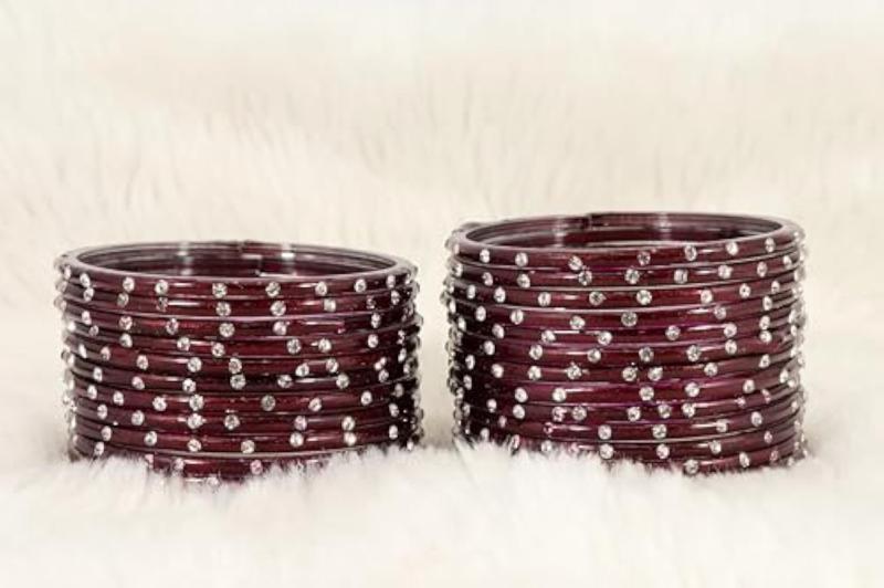 Add a touch of elegance to your ethnic look with this beautiful set of glass bangles. These bangles are embellished with fancy diamond stones, perfect for any occasion.