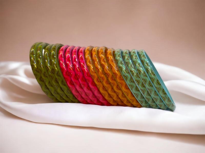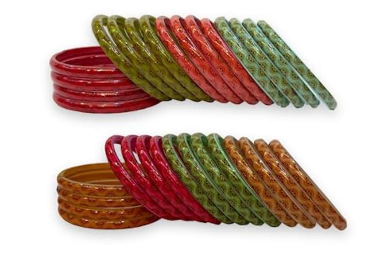 Elevate your style with these beautifully printed laminated Indian glass bangles that add a pop of color and charm to your outfit. Perfect for daily wear, workwear, and all occasions.