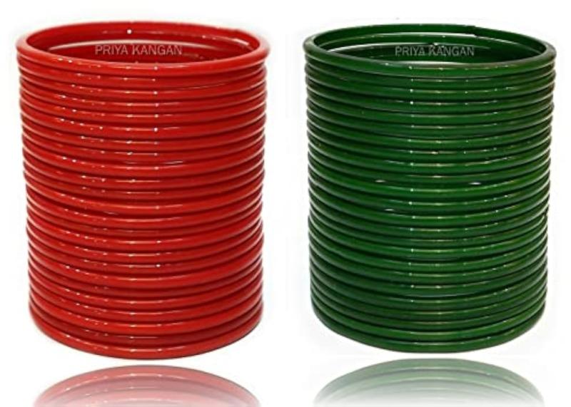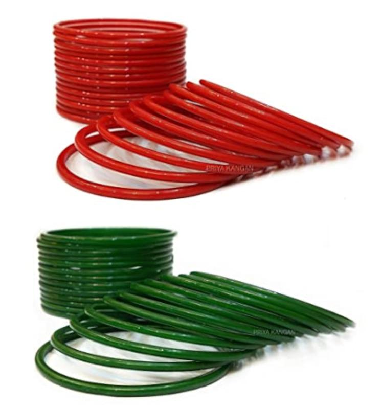 This set includes plain glass bangles in Opek & Green color. Perfect for traditional occasions.
