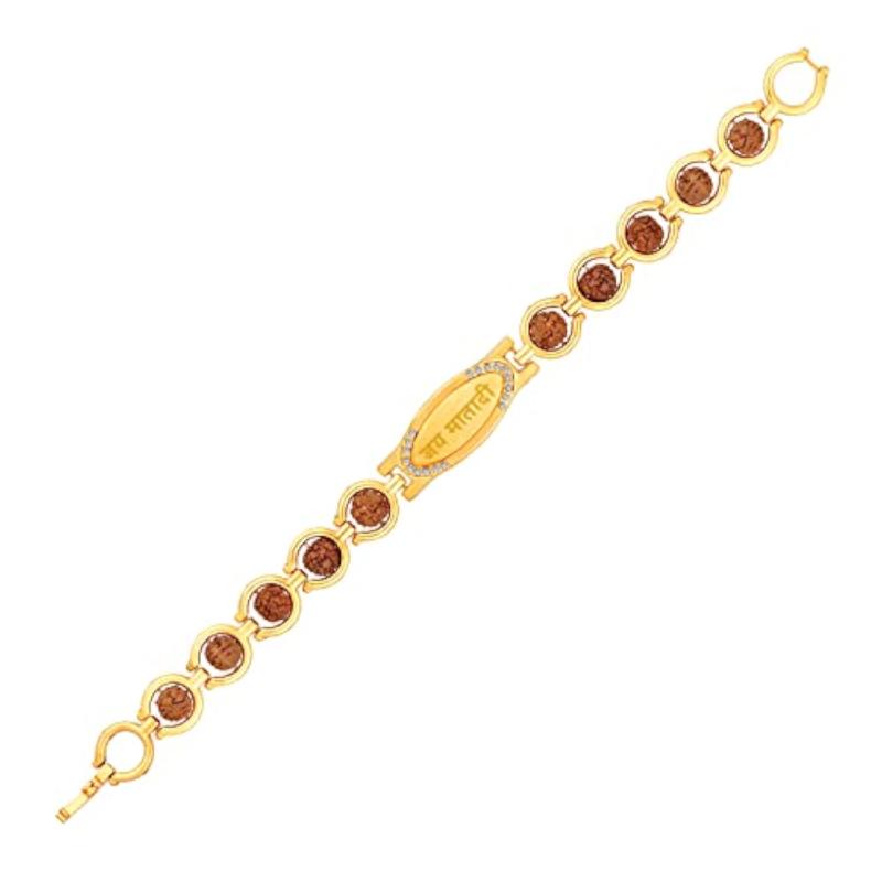 Embrace the divine with this Rudraksha bracelet featuring the sacred Jai Mata Di inscription. Rhodium plated for a sleek finish.