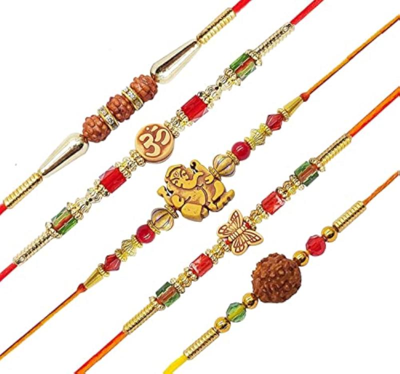 This beautiful Rakhi set includes 5 bracelet Rakhis perfect for your brother. Show your love and affection with these stylish pieces.