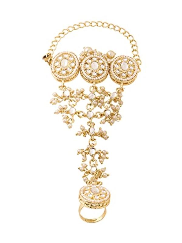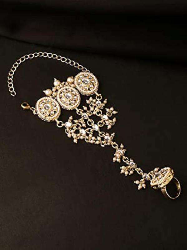 Elegant adjustable rings bracelet with Kundan studded design, perfect for traditional occasions