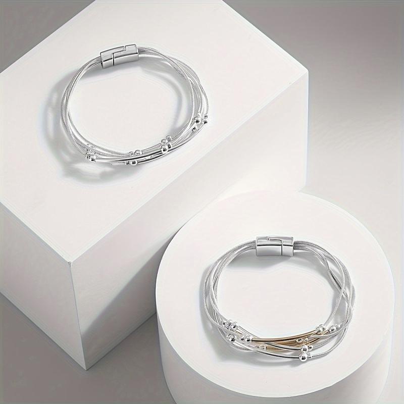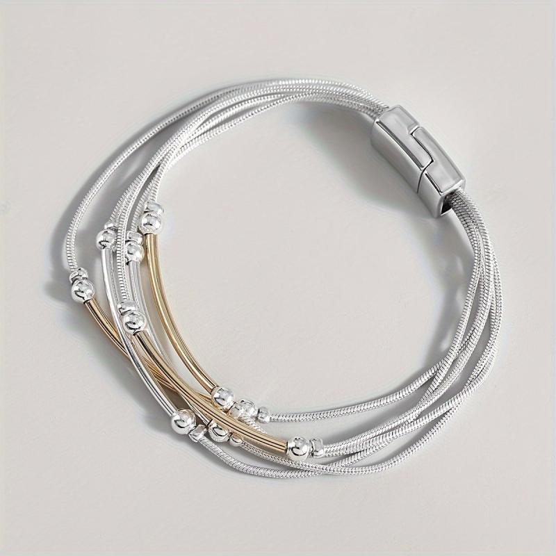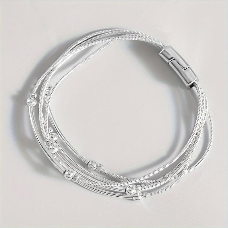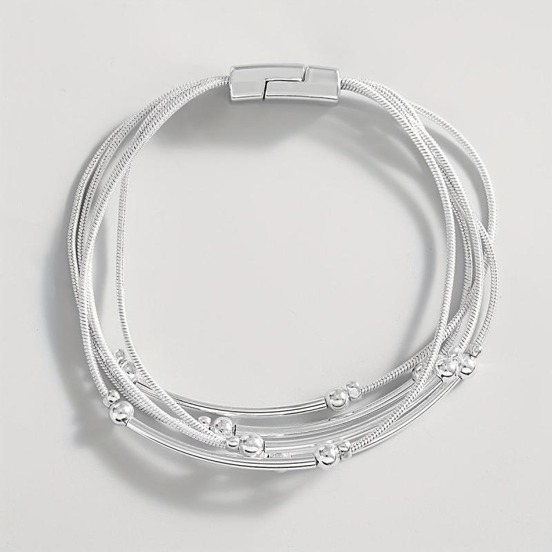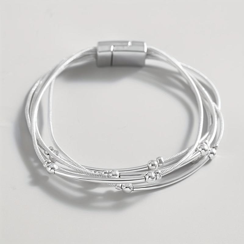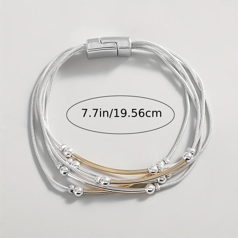 Elevate your party look with this stunning silvery chain bracelet featuring round tube beads. It's a perfect gift for someone who loves unique jewelry pieces.