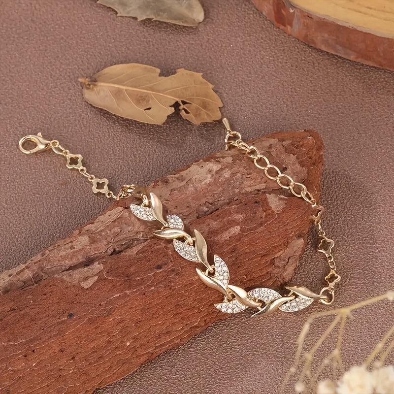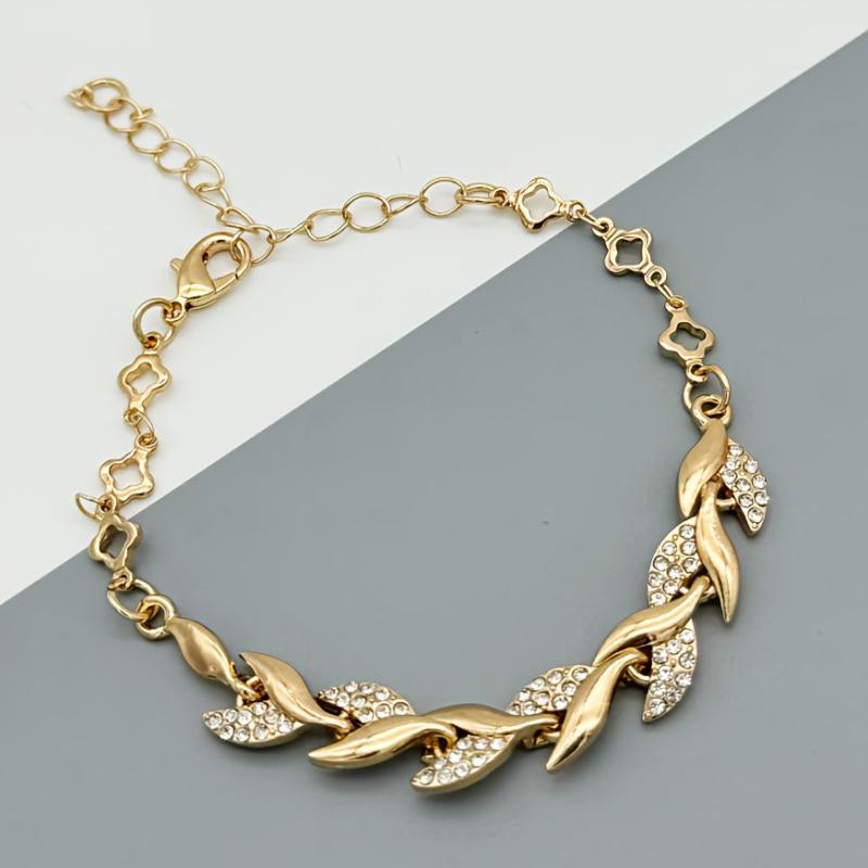 This elegant leaf chain bracelet features synthetic rhinestones for a touch of sparkle. Perfect for daily wear or party occasions, this bracelet is a great Valentine's gift and can be worn all season.