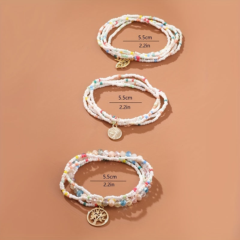 Enhance your daily wear with this stackable beaded bracelet featuring a leaf-shaped pendant. Perfect for women and girls who love boho style accessories.