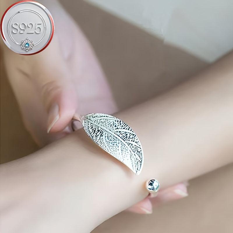 This stylish 925 silver bracelet features a leaf design, making it the perfect accessory for any outfit. It is suitable for women and makes a great gift for birthdays, Christmas, or any special occasion.