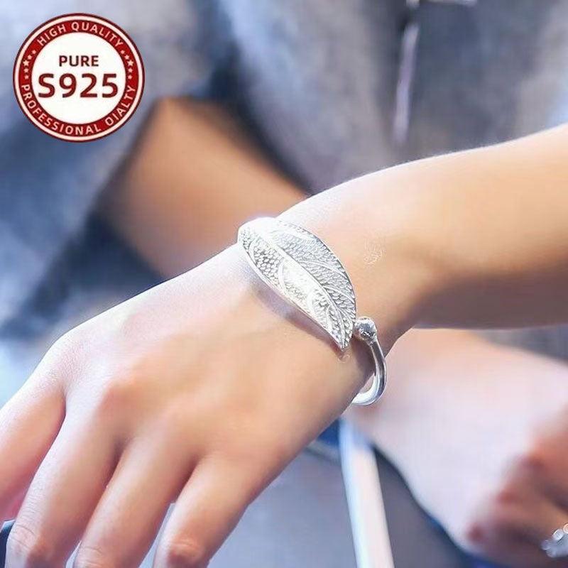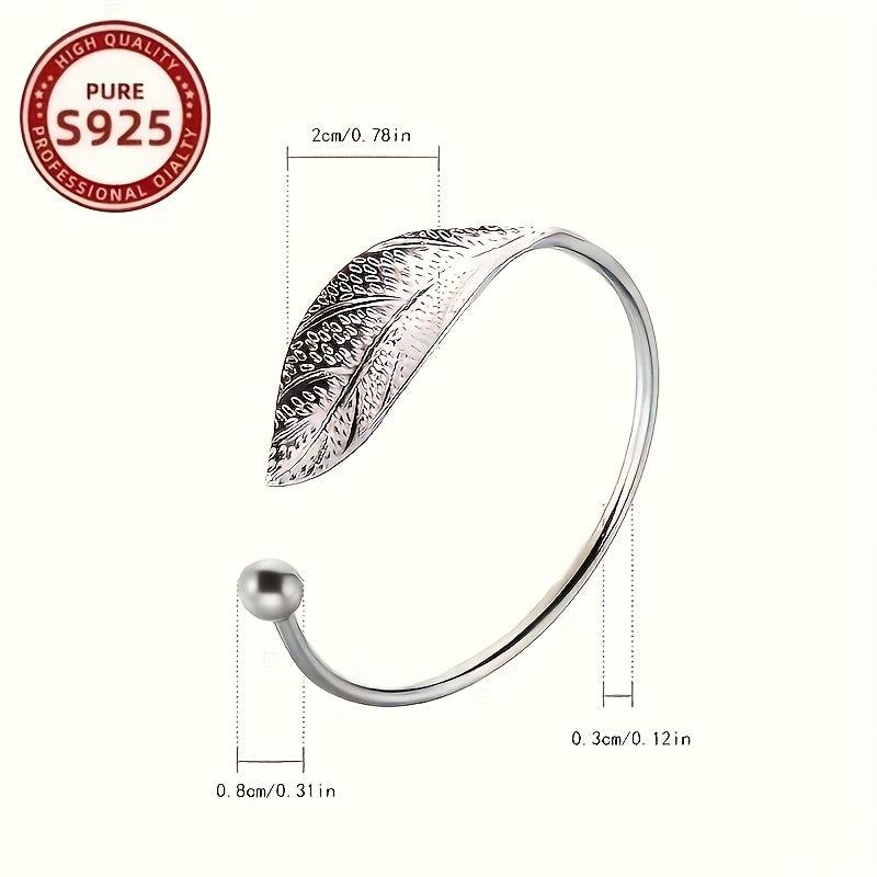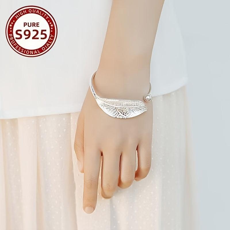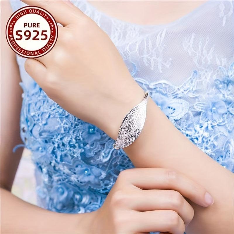Leaf Shaped S925 Bracelet for Women - Fashionable and Open