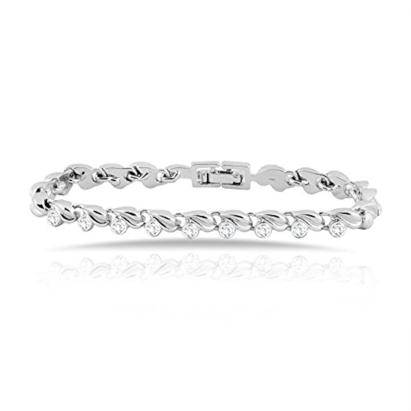 Elevate your style with this fashionable leafy bracelet featuring a sparkling crystal accent.