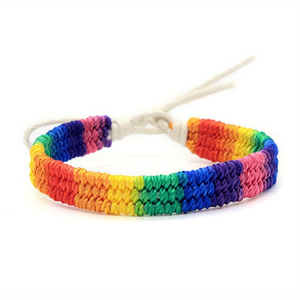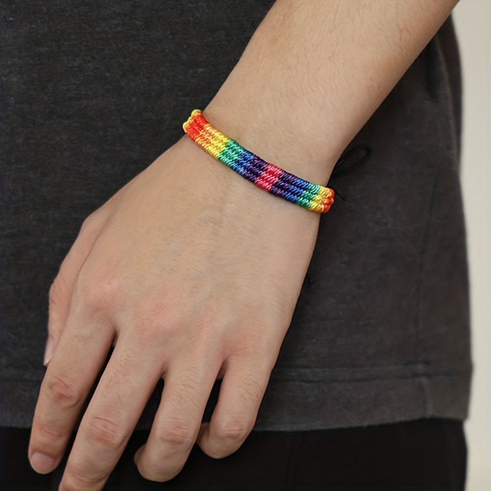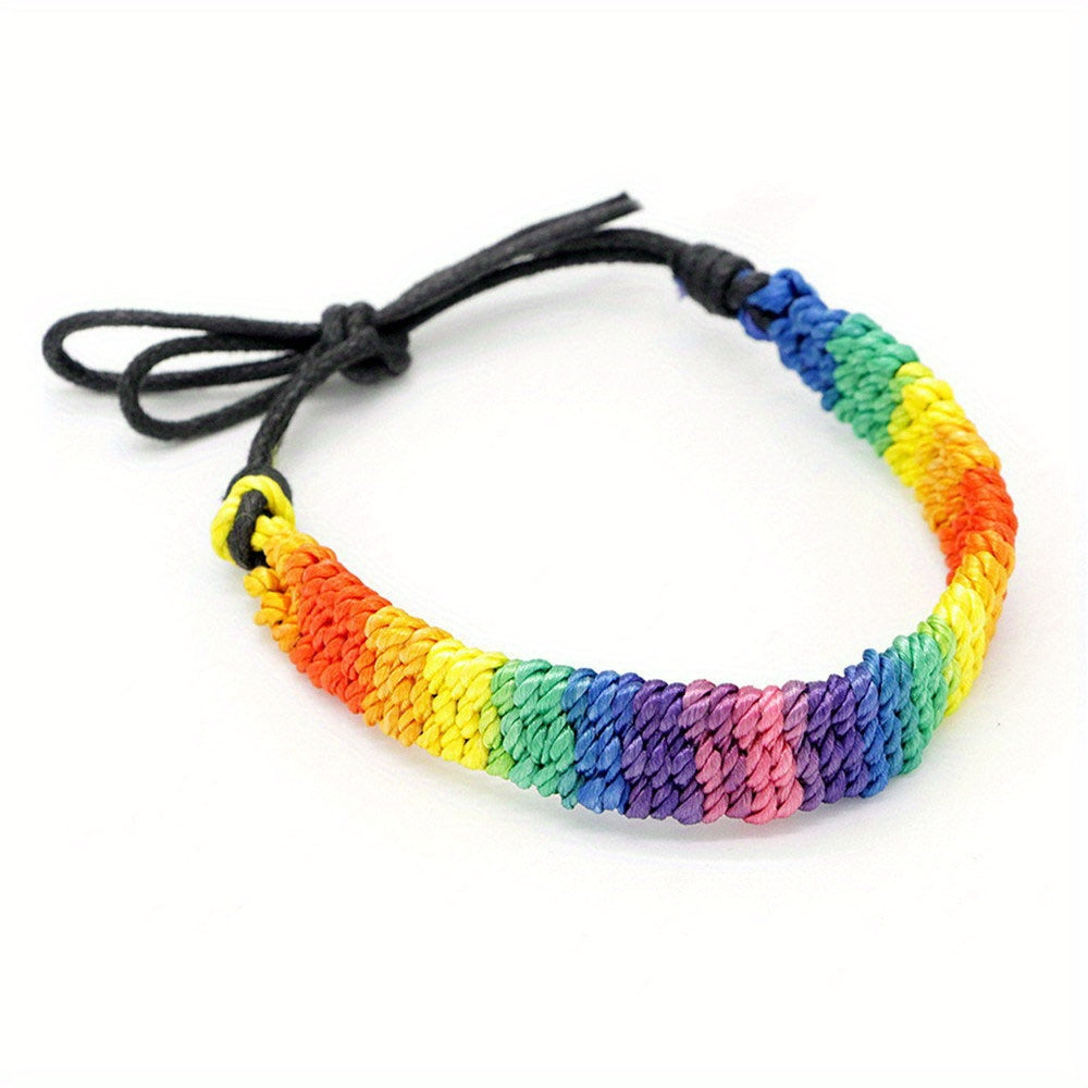 Colorful rainbow rope bracelet designed for male, female, and couples. Express your support for the LGBTQ community with this stylish bracelet.