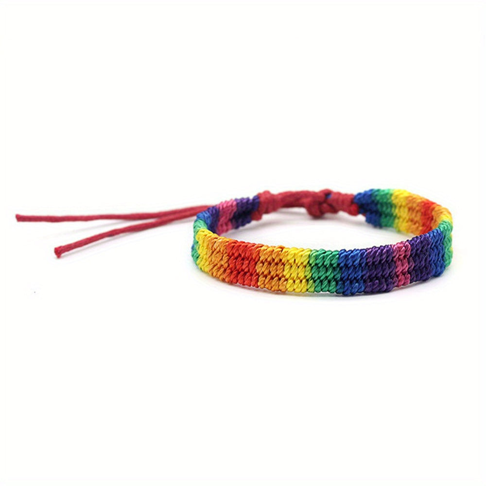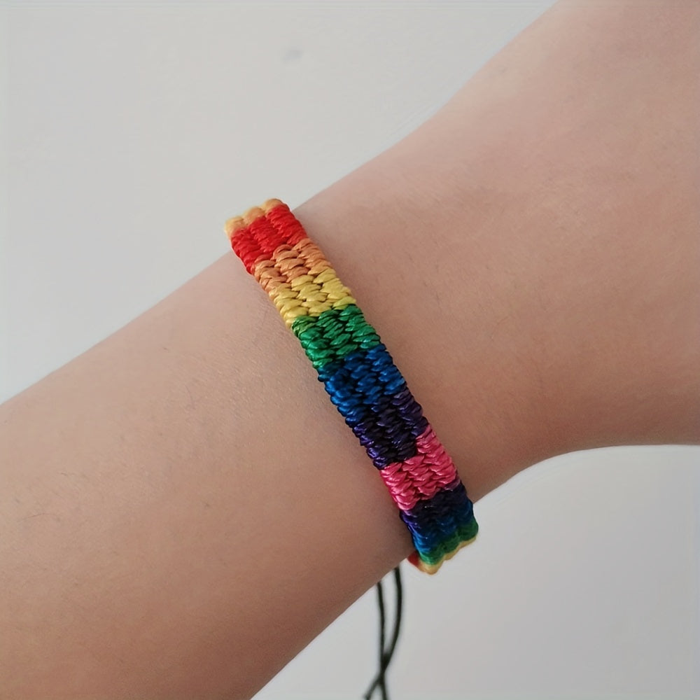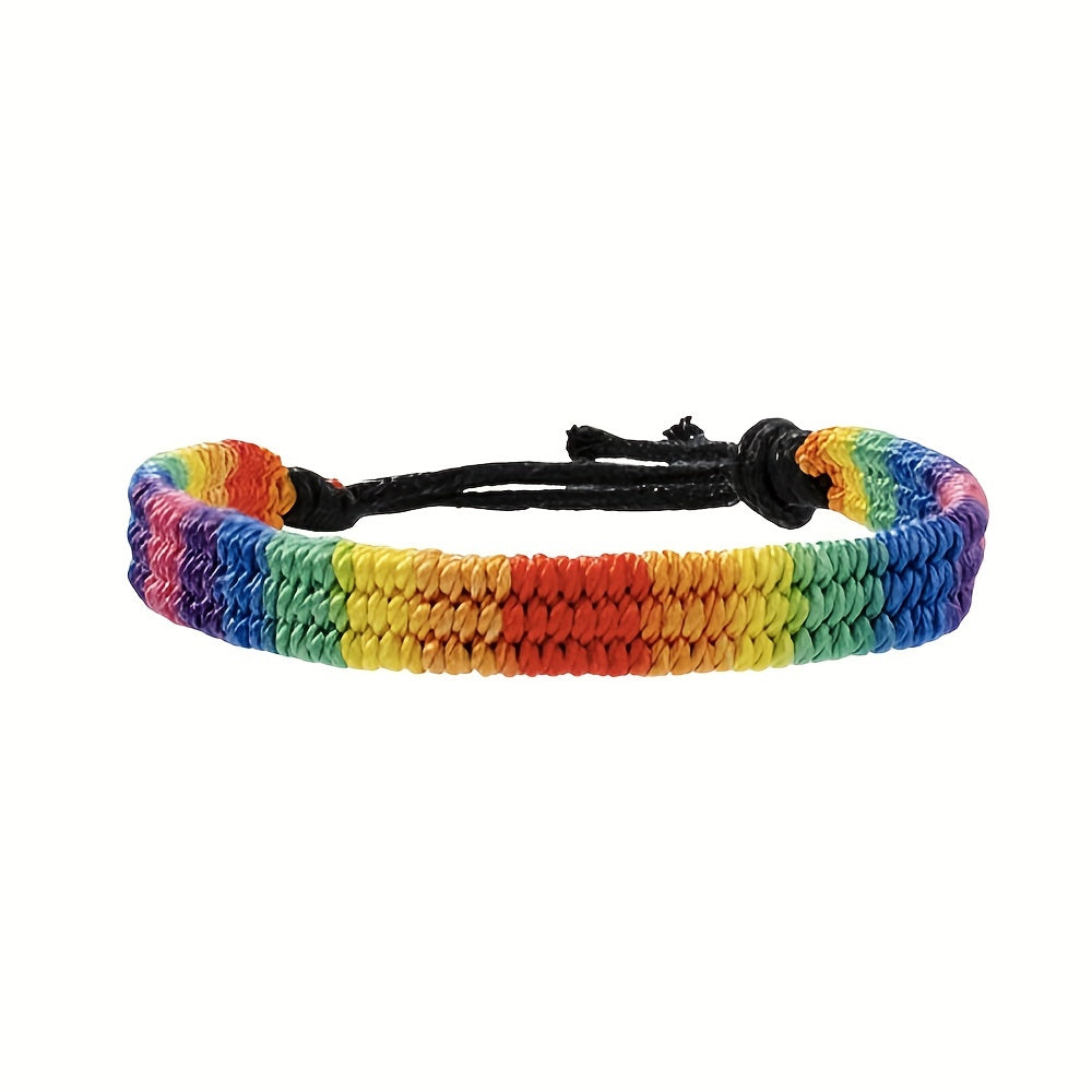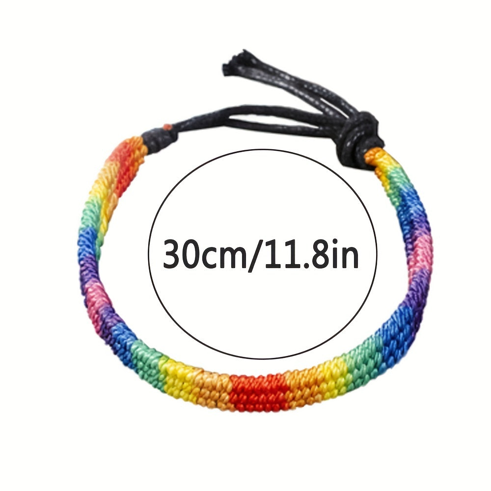 Colorful rainbow rope bracelet designed for male, female, and couples. Express your support for the LGBTQ community with this stylish bracelet.