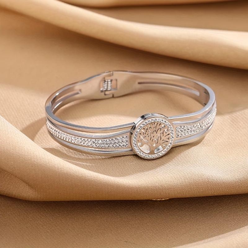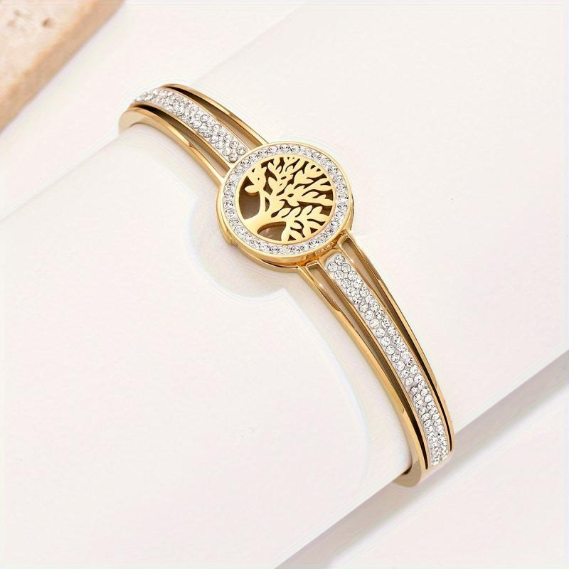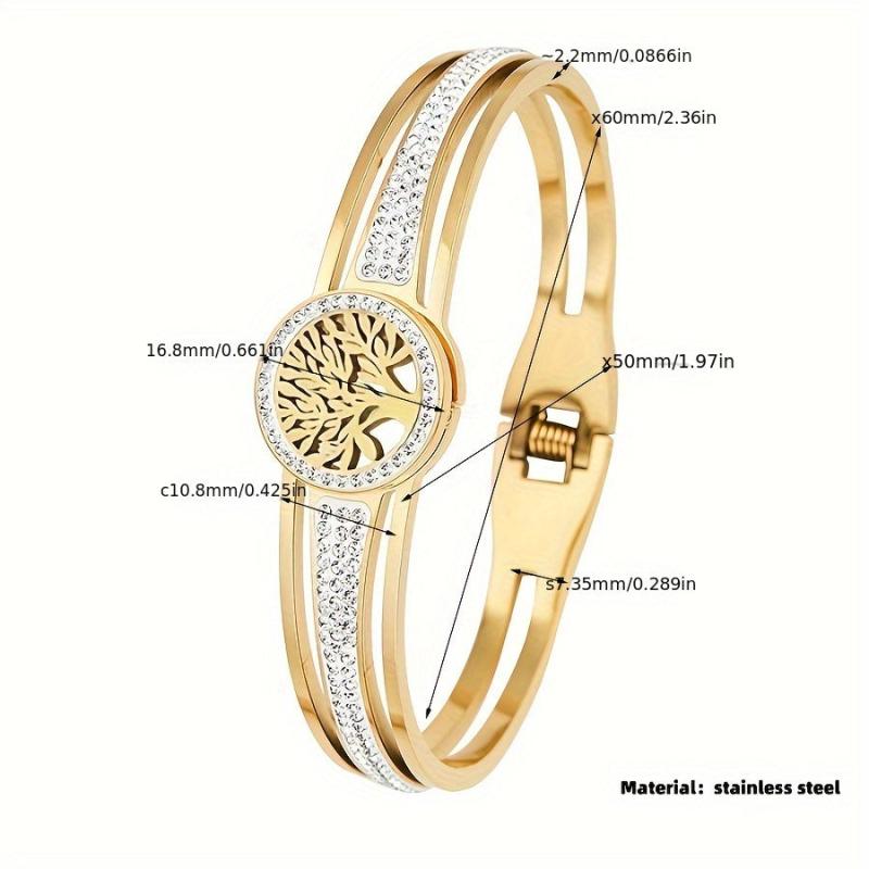 This elegant Life Tree bangle is made of high-quality stainless steel, making it a perfect holiday gift for your loved ones.