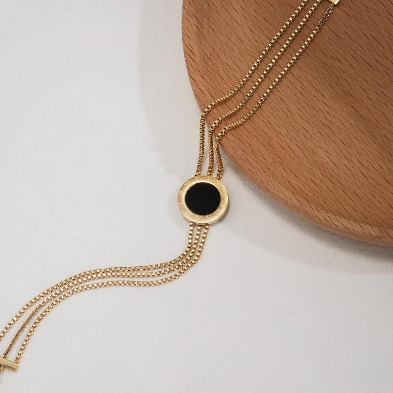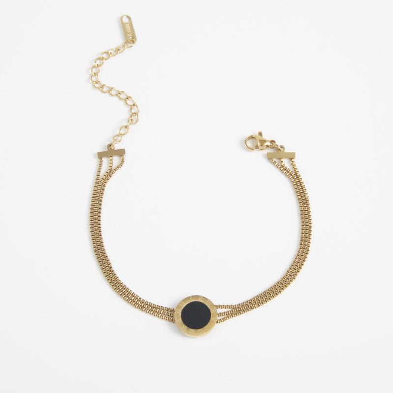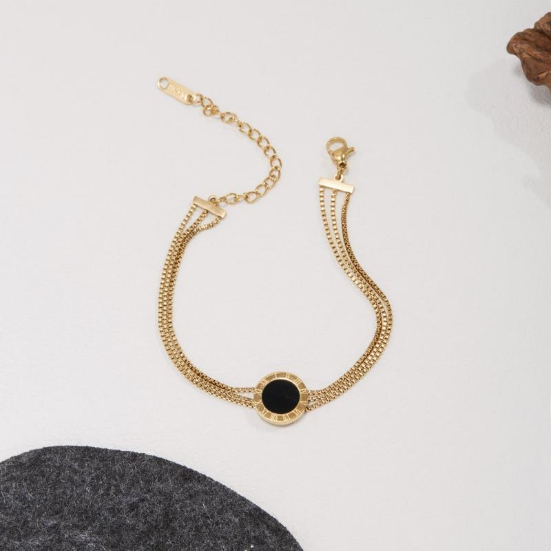 This bracelet features Roman numeral charms in a golden tone. Made of high-quality stainless steel, it is adjustable to fit various wrist sizes.