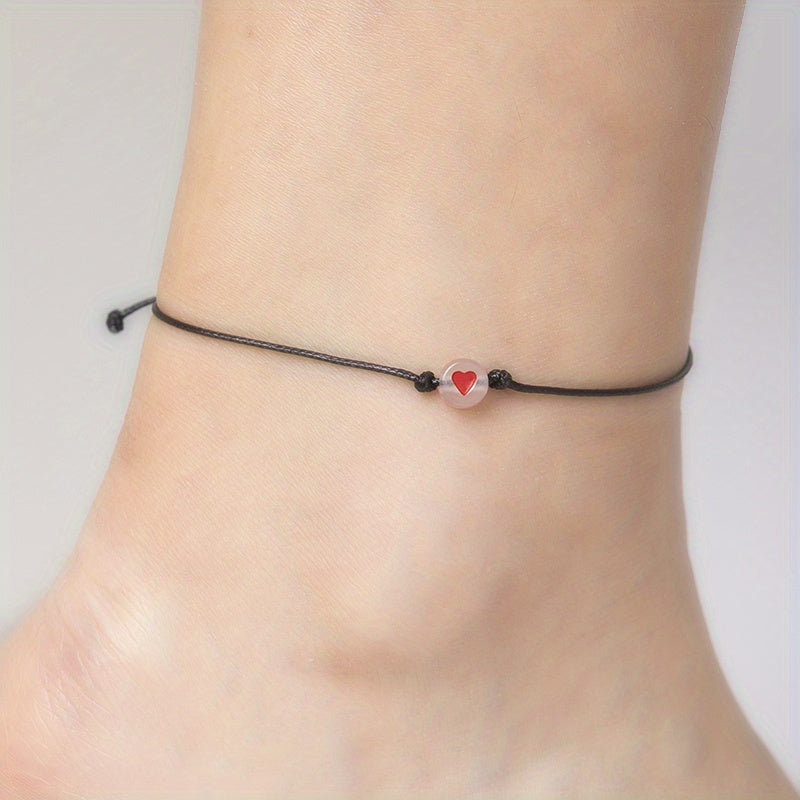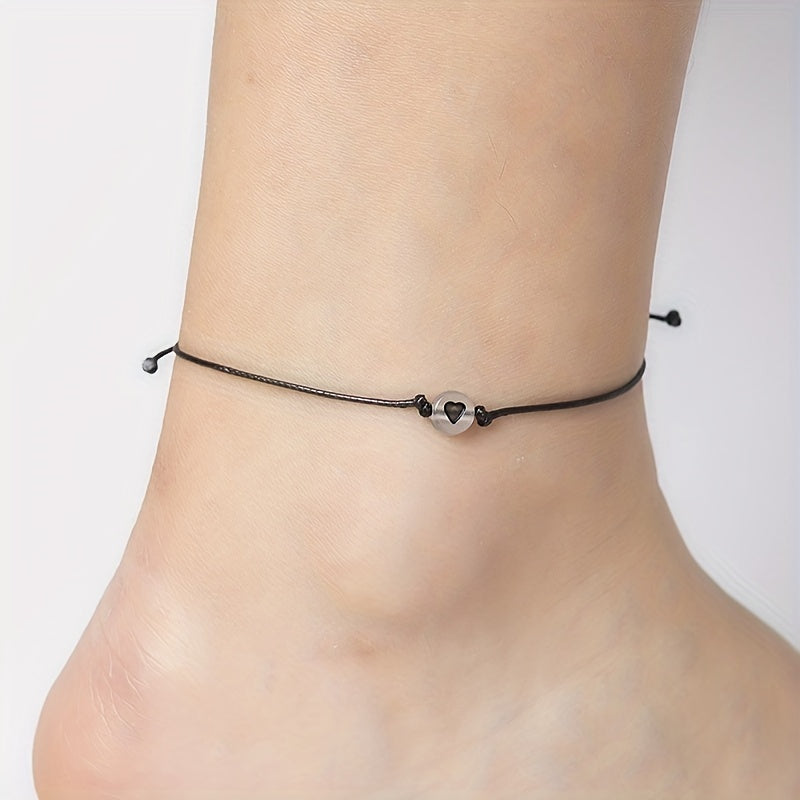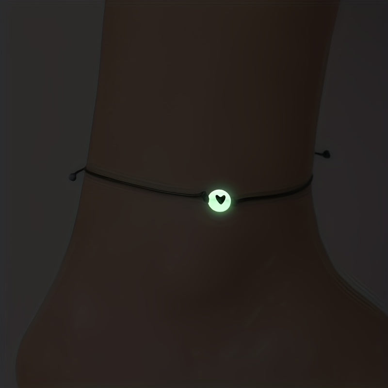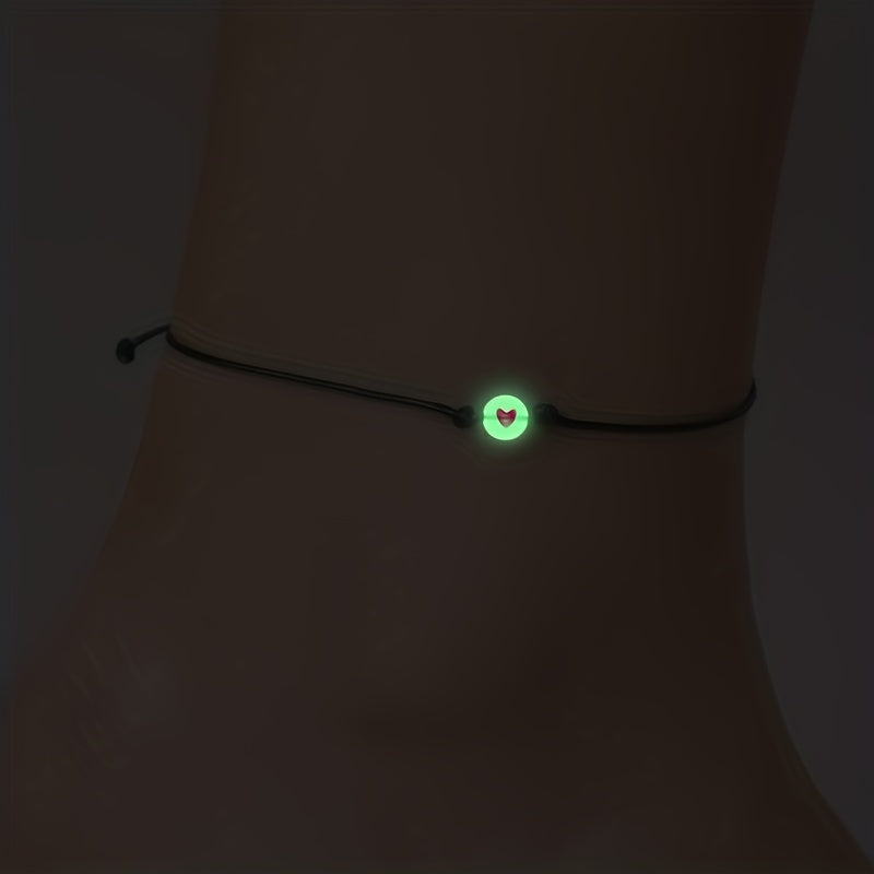 This adjustable ankle bracelet features a love heart pattern with luminous beads that glow in the dark. Perfect for adding a touch of charm to your look.