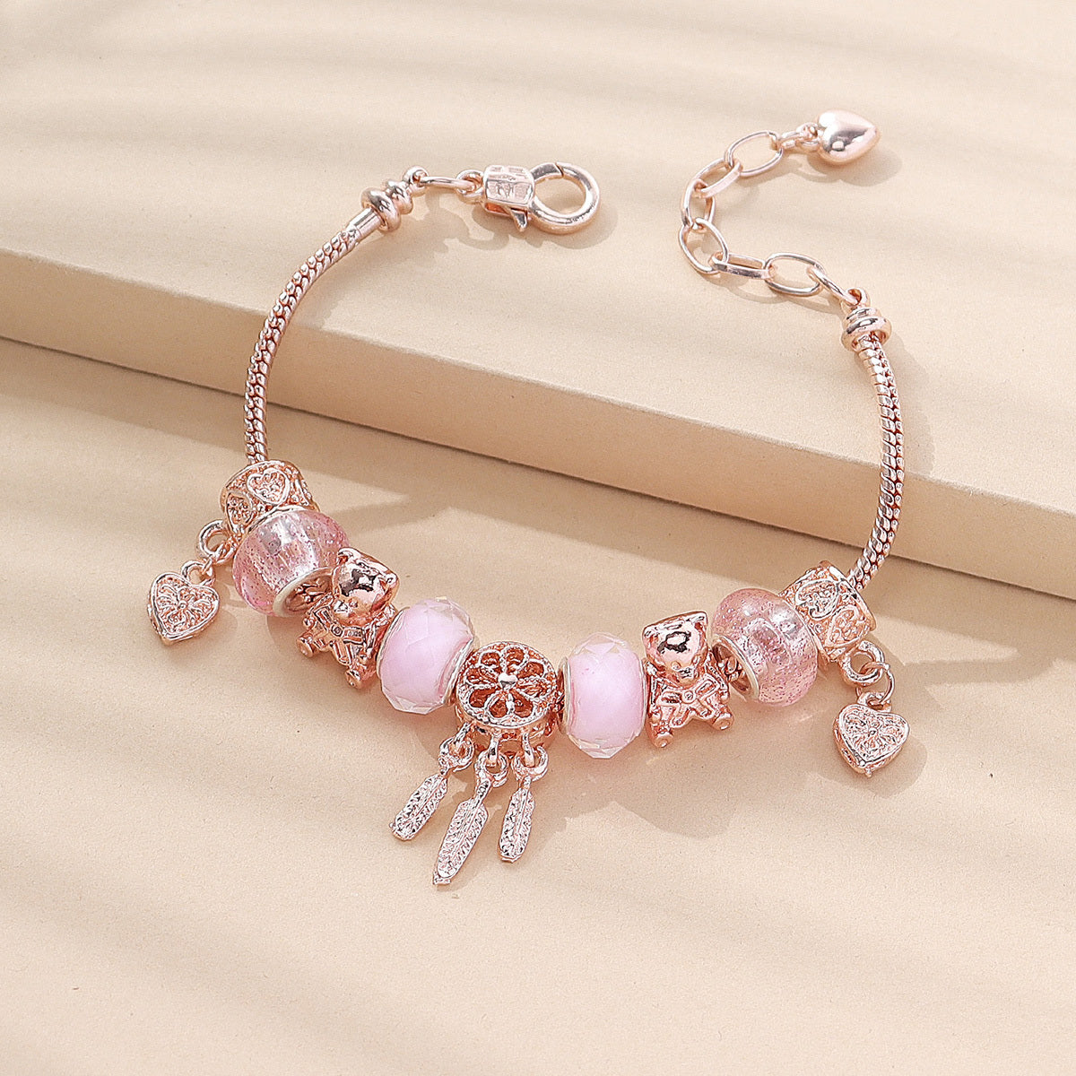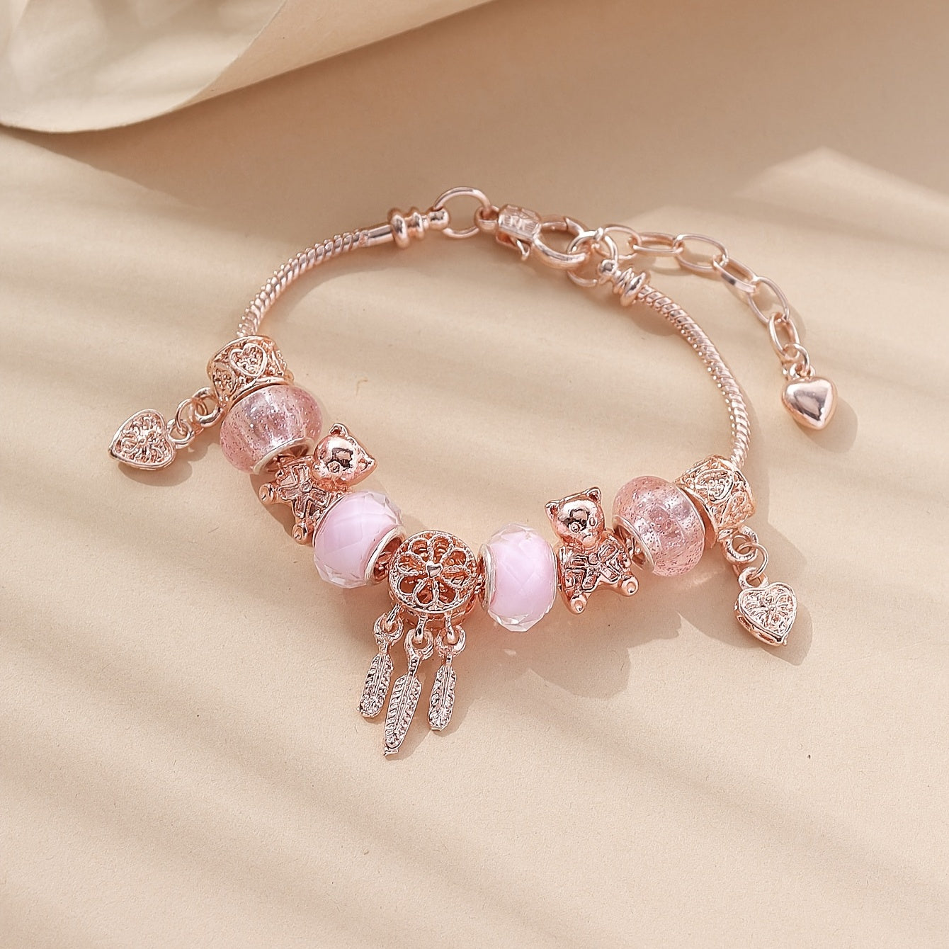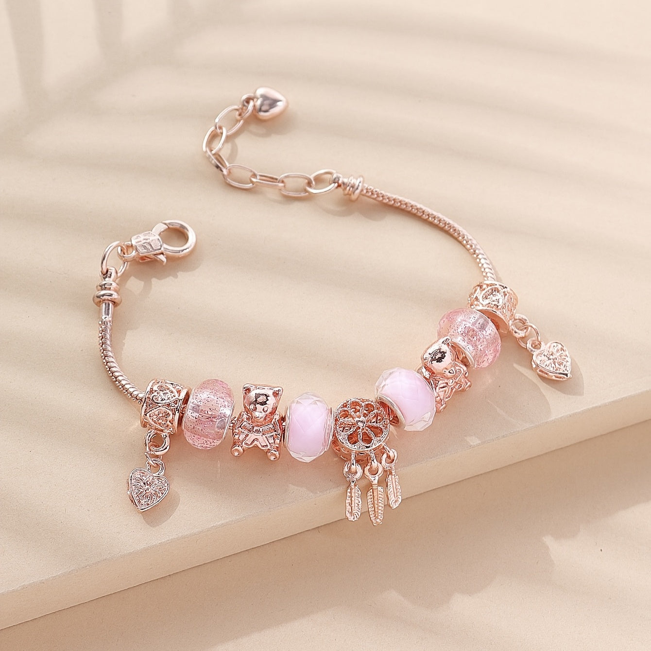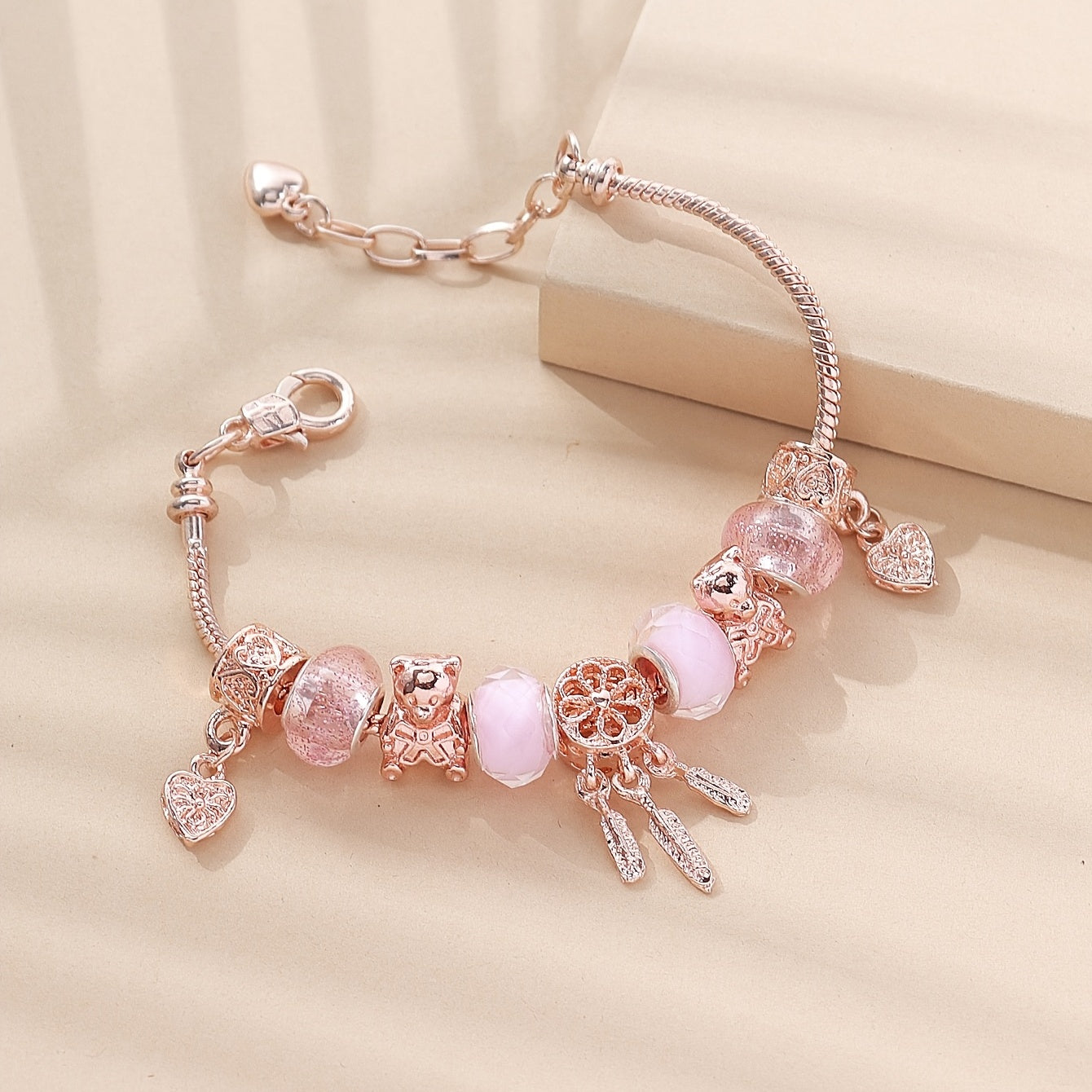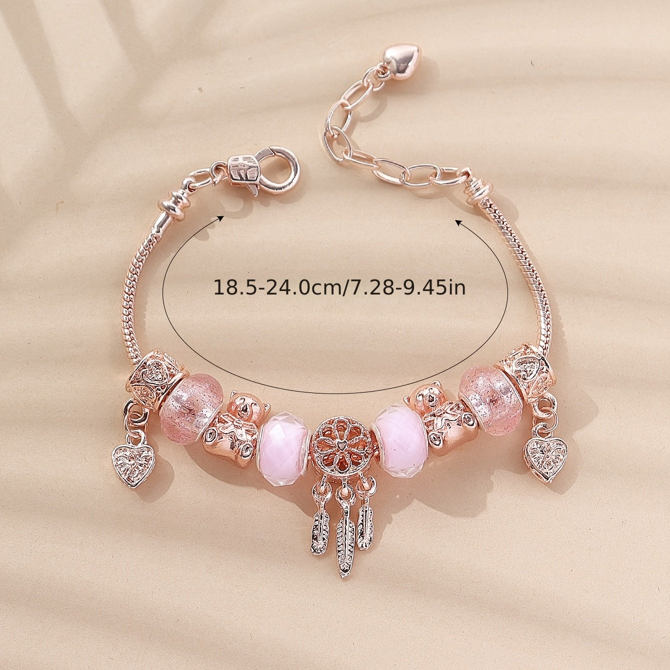 Adorn your wrist with this charming beaded bracelet featuring a pattern of bear beads and a heart-shaped pendant. The leaf tassel adds a touch of nature-inspired elegance. Adjustable design makes it a sweet gift for a loved one or yourself.