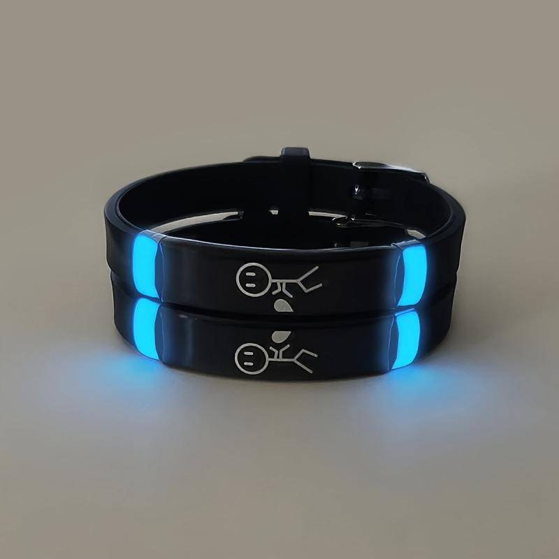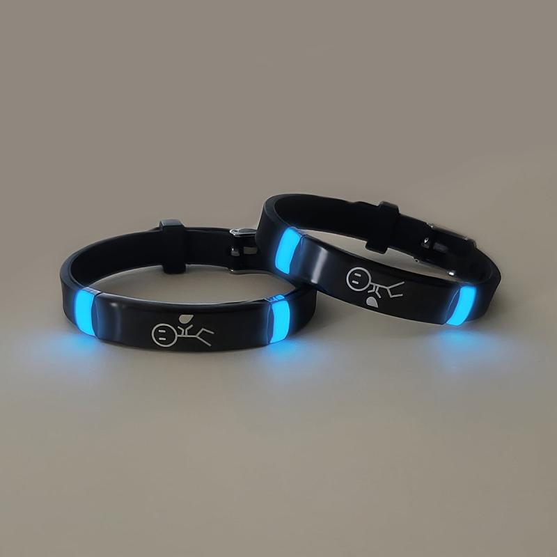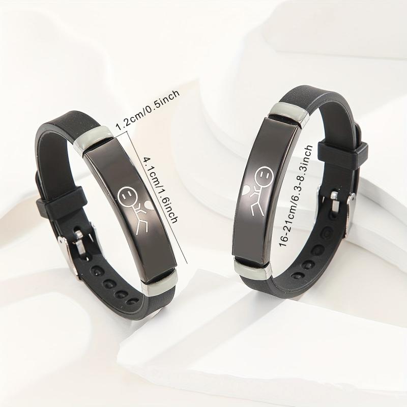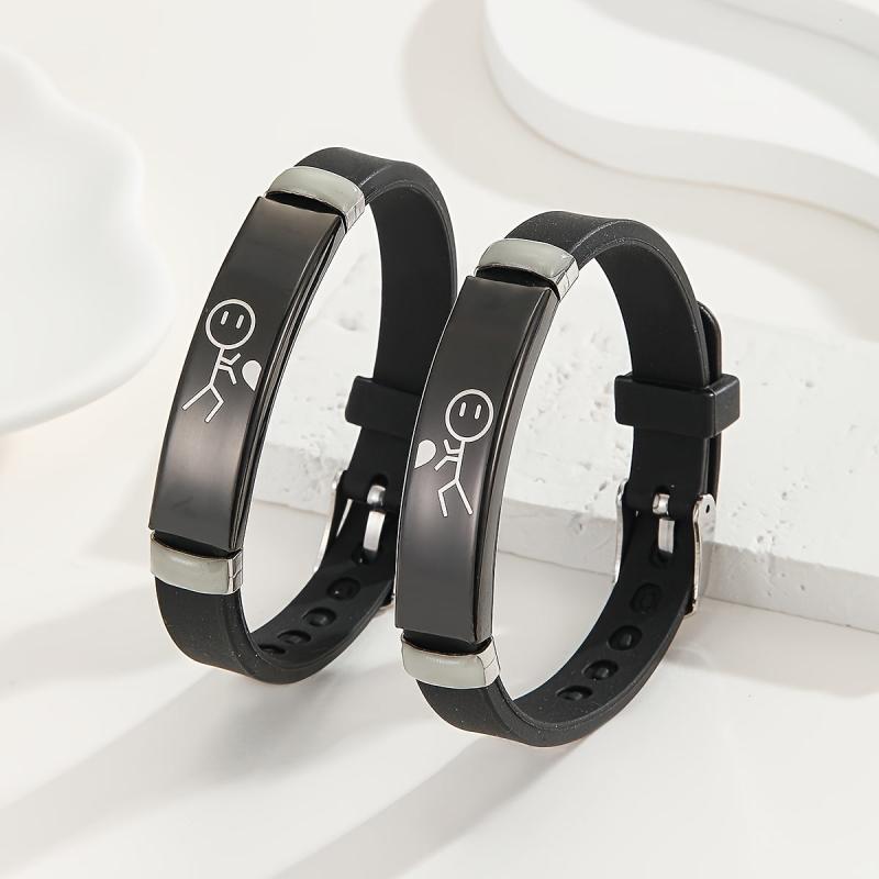 This set includes two luminous bracelets featuring a little person pushing a heart and burying couples hand designs, making it a perfect gift for couples.