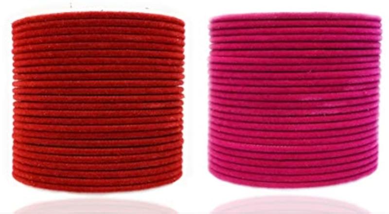 Add a pop of color to your outfit with this vibrant bangle set featuring a mix of fabric, metal, and enamel base metal. The magenta hue is perfect for adding a touch of playfulness to your look.