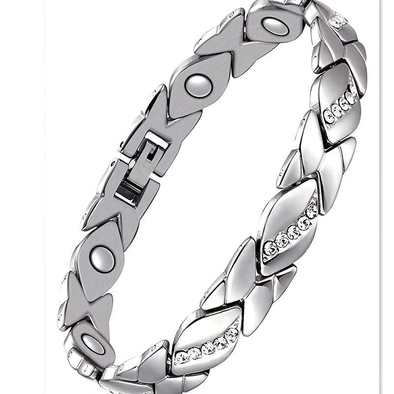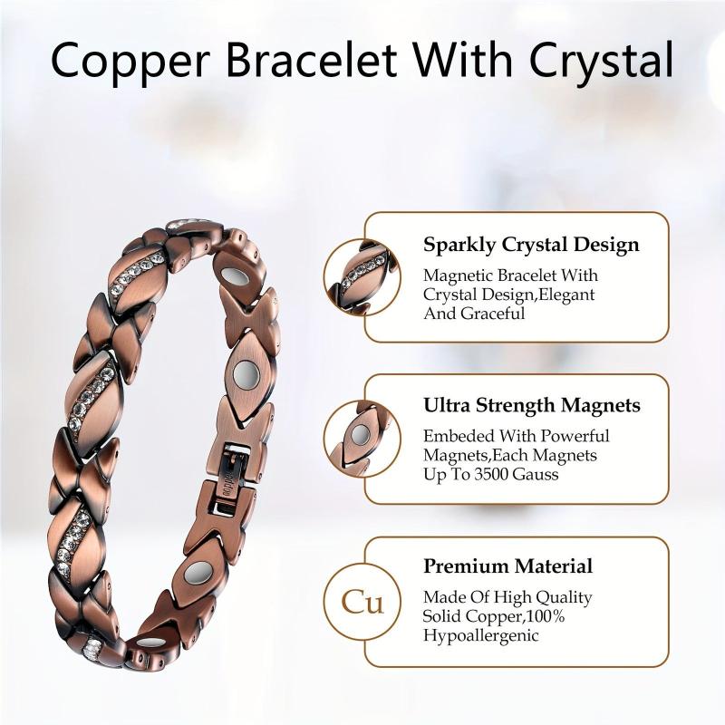 This set includes a stylish magnetic bracelet with a tree leaf inlay design and an antique red copper cuff bracelet. Both are adjustable to fit most wrist sizes.