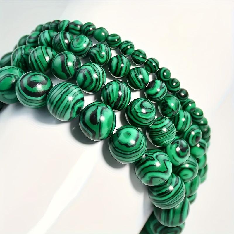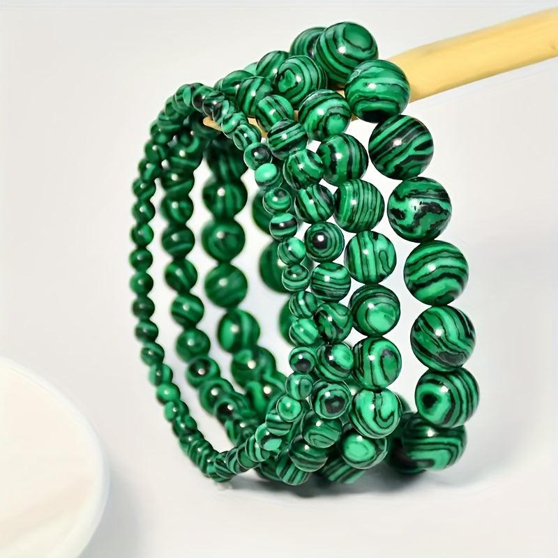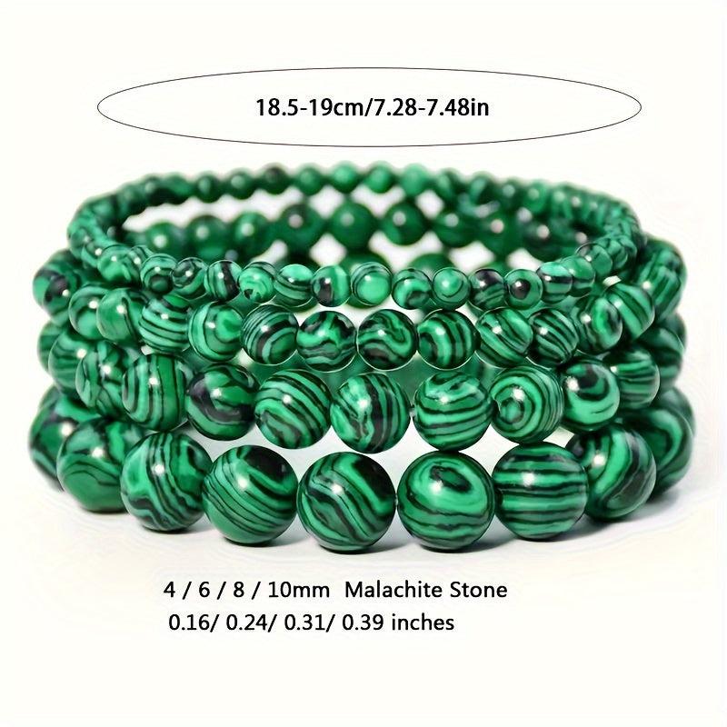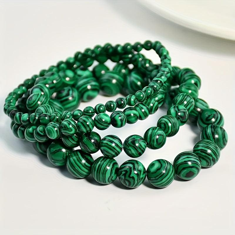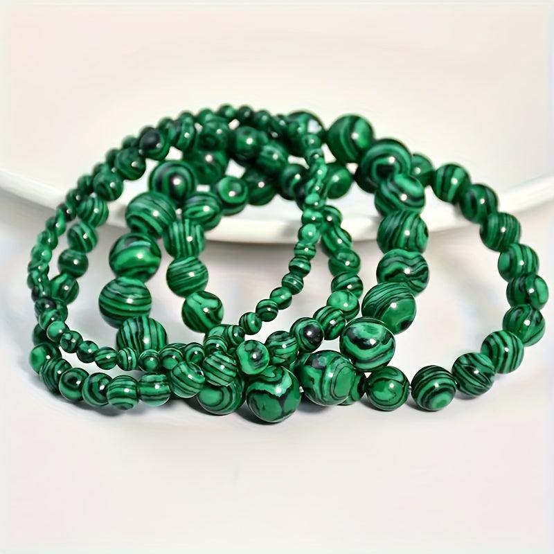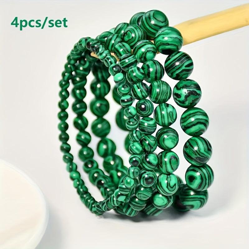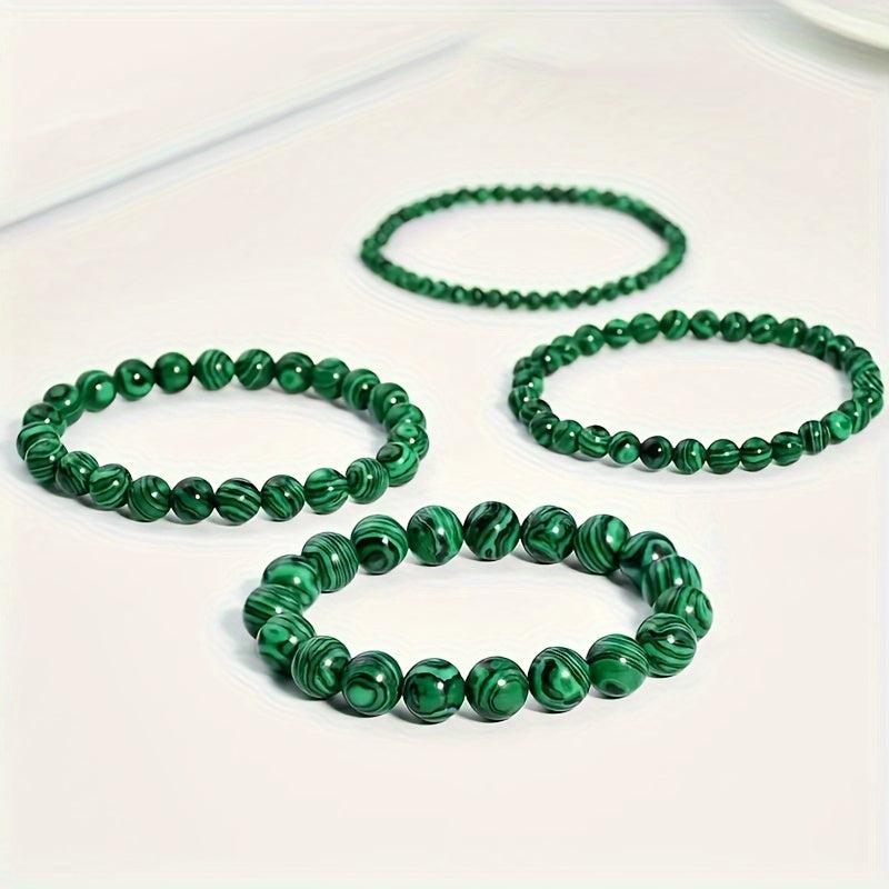 This set includes 4 stretch bracelets made of malachite beads. Perfect for women. Great as a gift.
