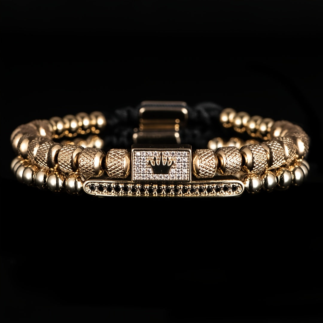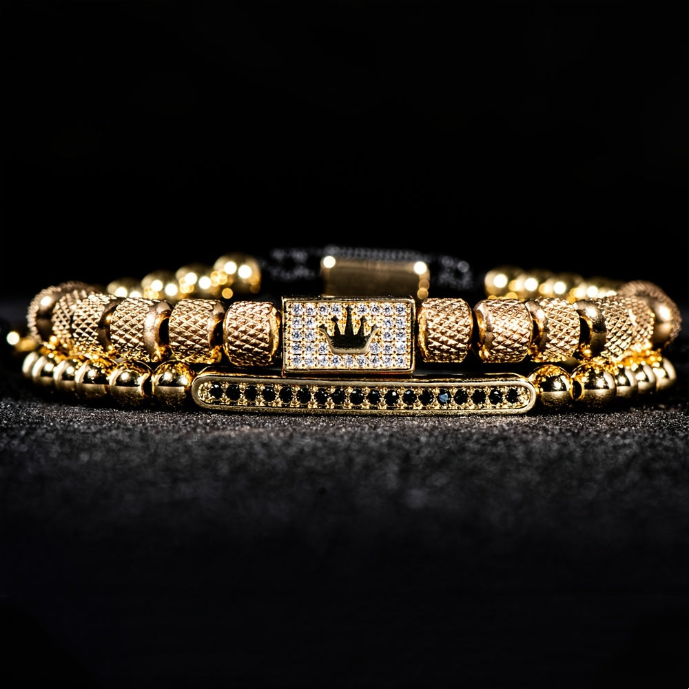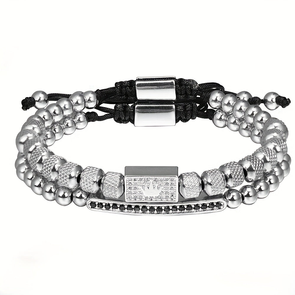 Enhance your style with this 2-piece charm bracelet set for men, featuring textured beads and a square crown inlay design. Perfect for adding a touch of sophistication to your look.