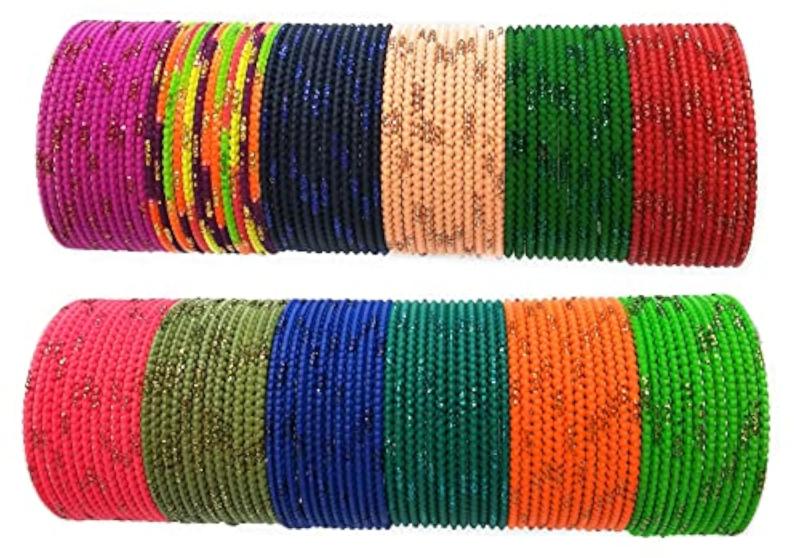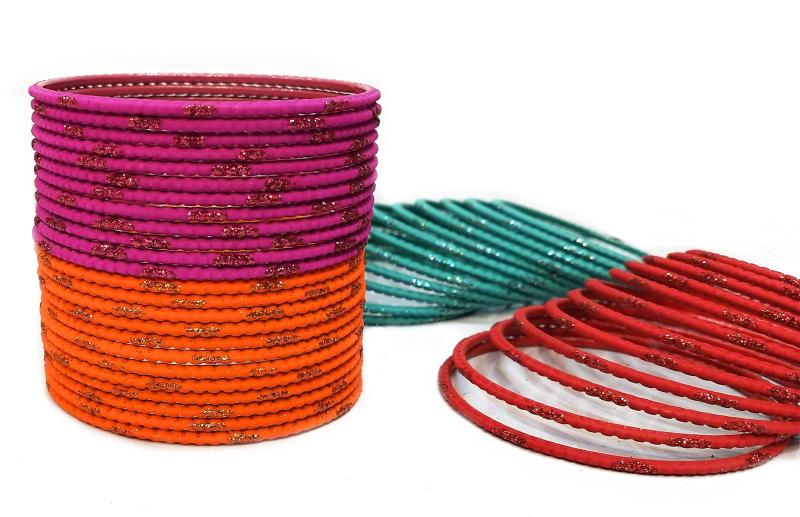 Elegant collection of metal bangles with matte finish and zari works, perfect for adding a touch of charm to your outfit.