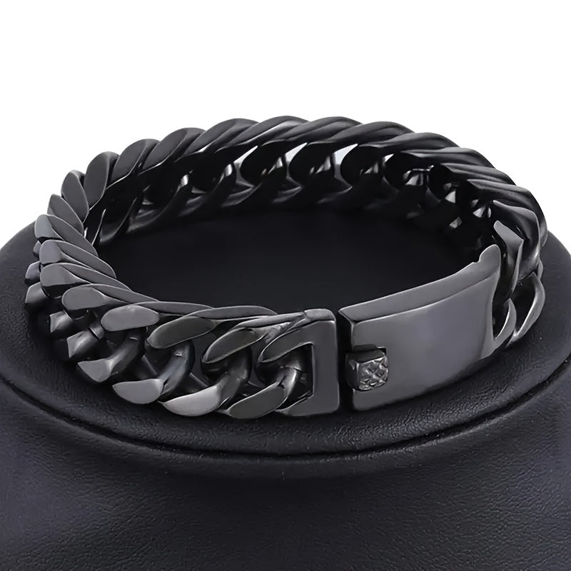 This 10mm characteristically domineering bracelet is crafted from durable alloy material and available in three colors: golden, silver, and black.