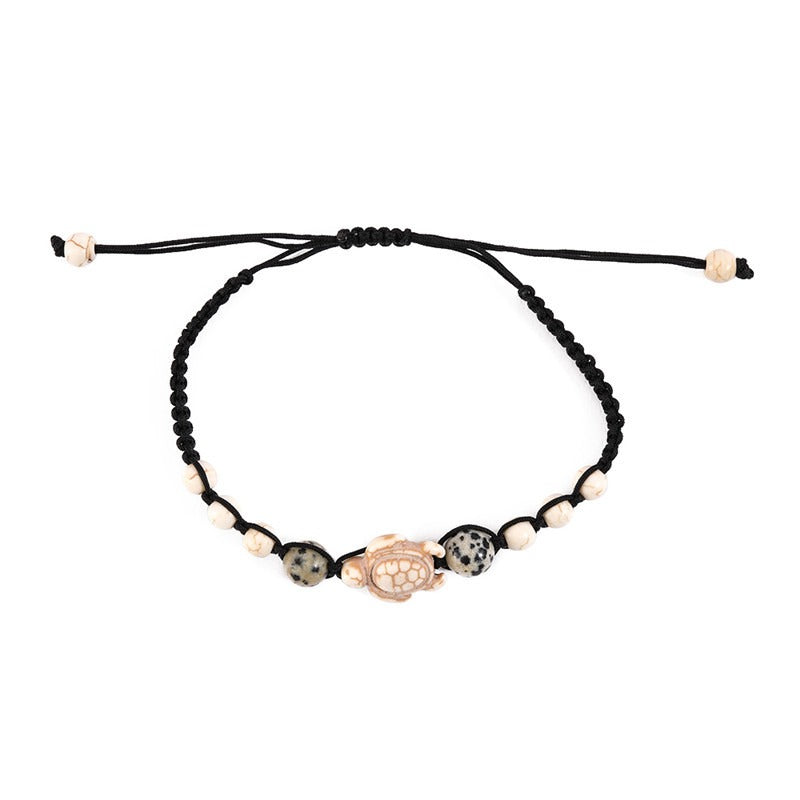 This hand-woven vintage bracelet features turquoise turtle beads. It adds a unique touch to your style.
