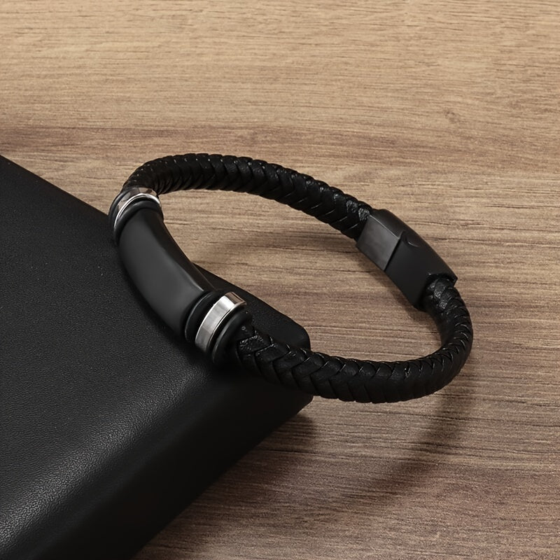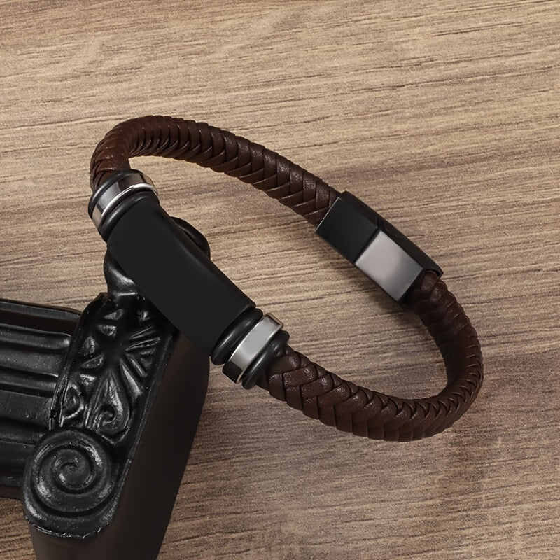 Add a cool look to your outfit with this faux leather braided bracelet. Perfect for street parties and casual occasions.