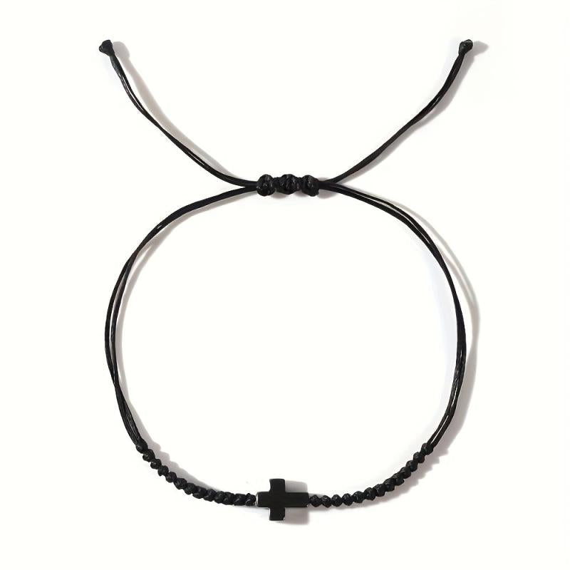 This stylish men's braided rope bracelet features a cross symbol for protection. Made of high-quality materials, it is a perfect jewelry accessory for everyday wear.