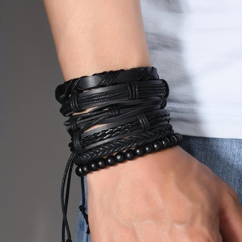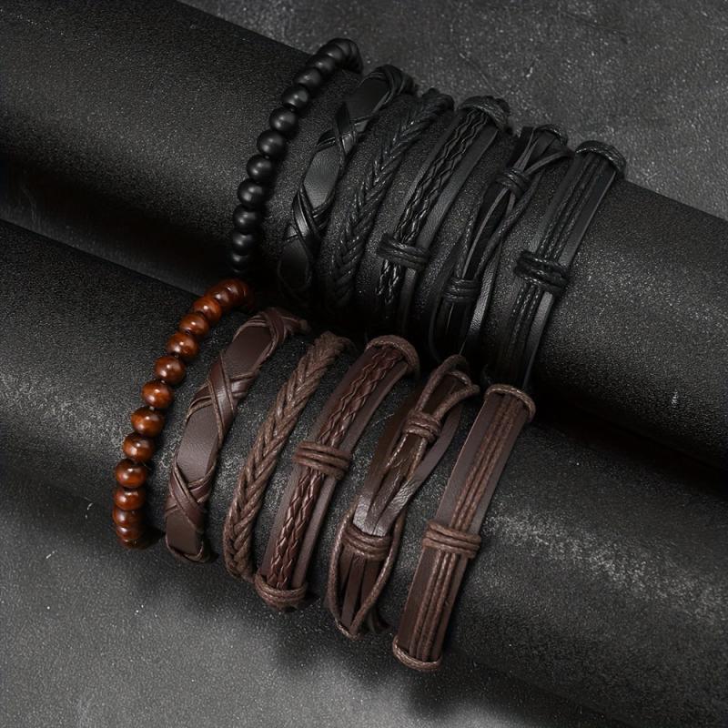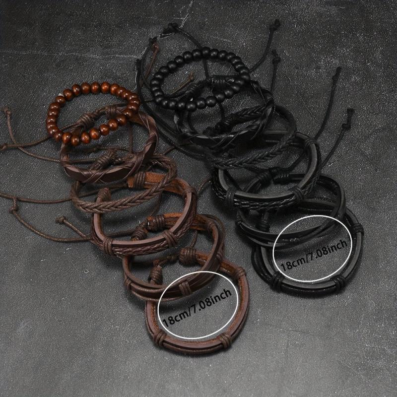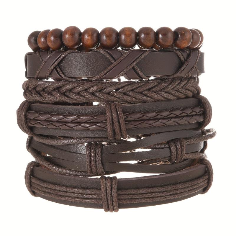 Elevate your style with this vintage-inspired faux leather bracelet set. This set includes braided and beaded wristbands in a rich brown tone that will add a touch of rugged charm to any outfit.