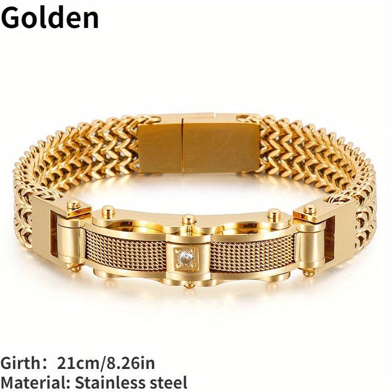 Elegant men's chain bracelet with inlaid rhinestones and magnetic closure. The perfect accessory for adding a touch of style to any outfit.