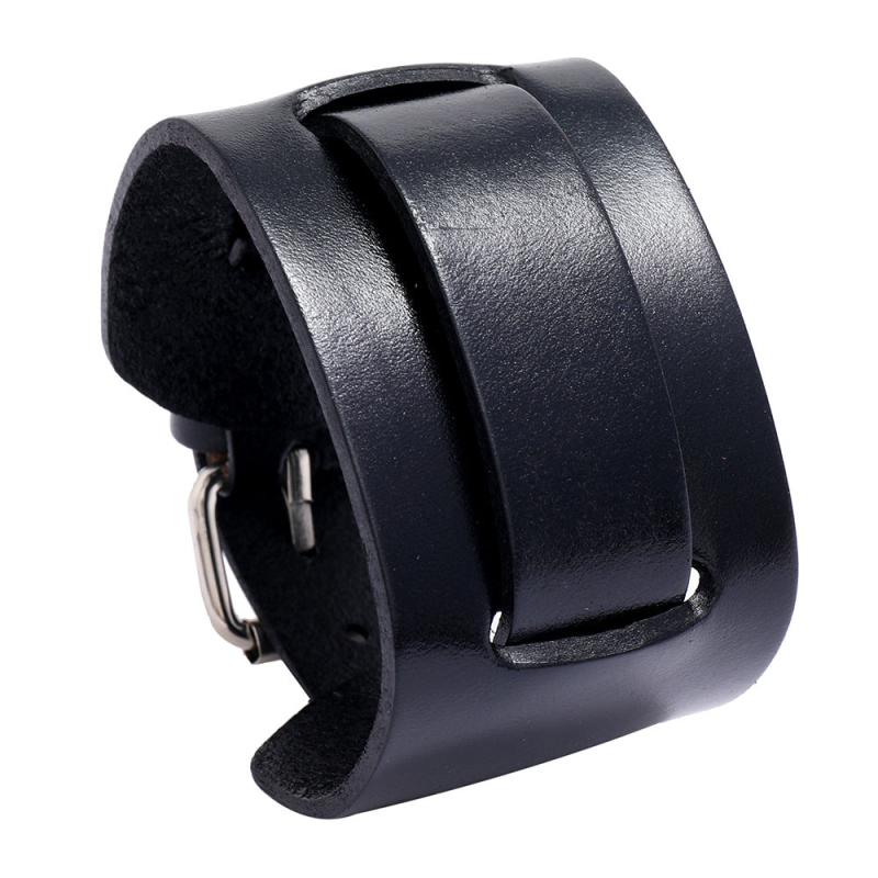 This retro punk style bracelet is made from genuine cowhide leather, featuring a wide design that adds a touch of edgy style. It's adjustable to fit various wrist sizes, making it a perfect gift for men.
