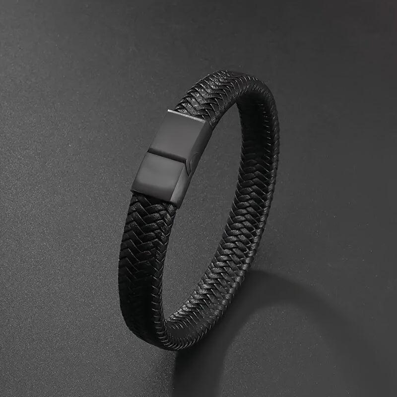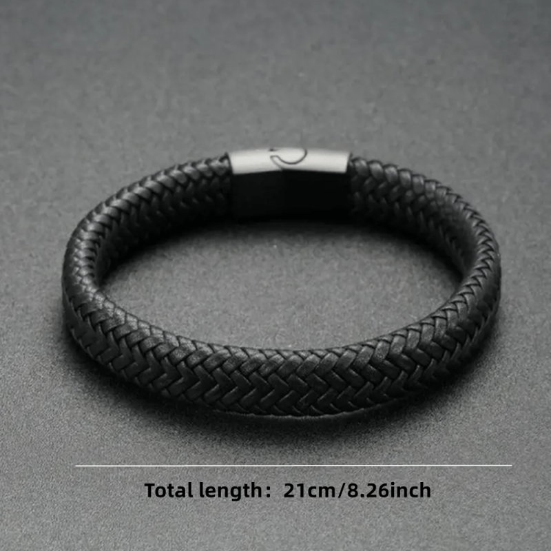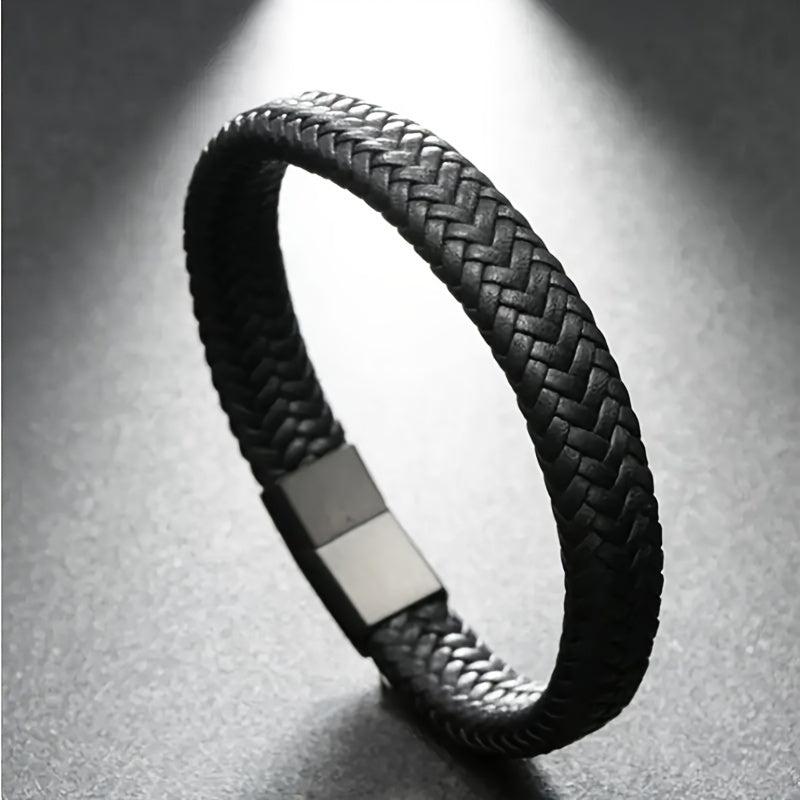 Add a touch of retro style to your look with this stylish faux leather braided bracelet. The magnetic clasp makes it easy to put on and take off.