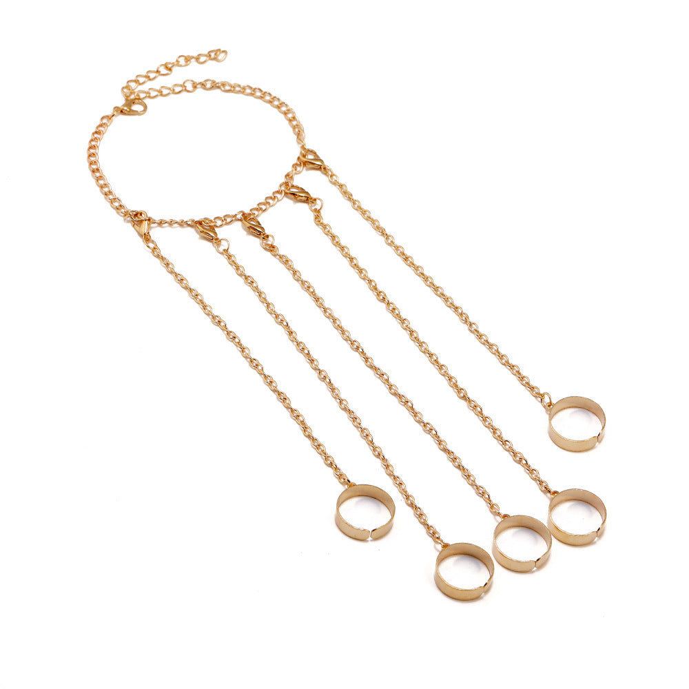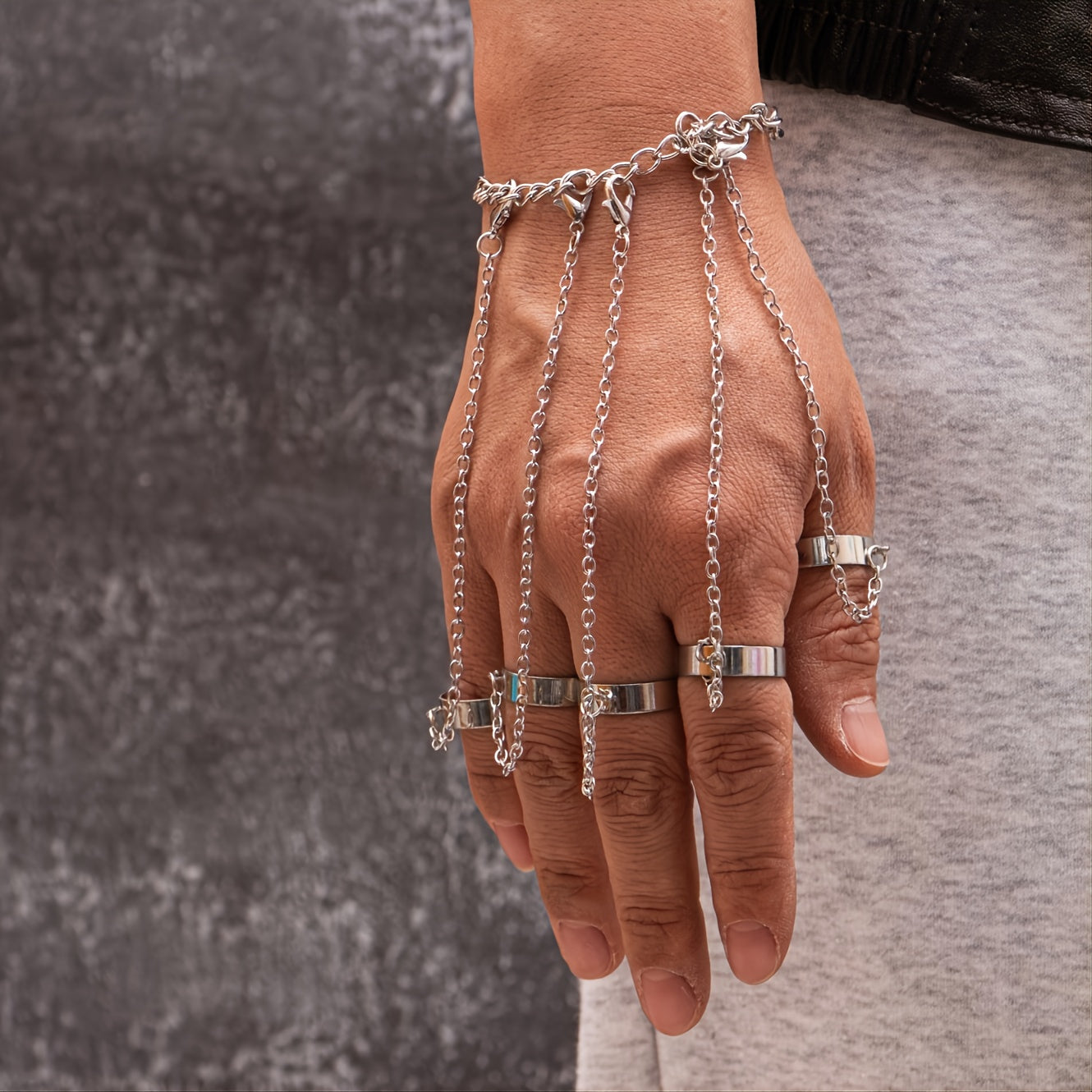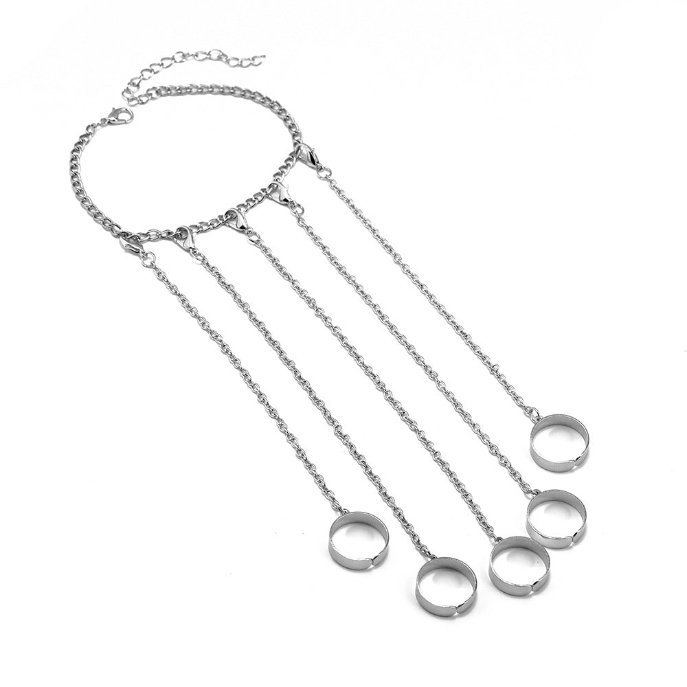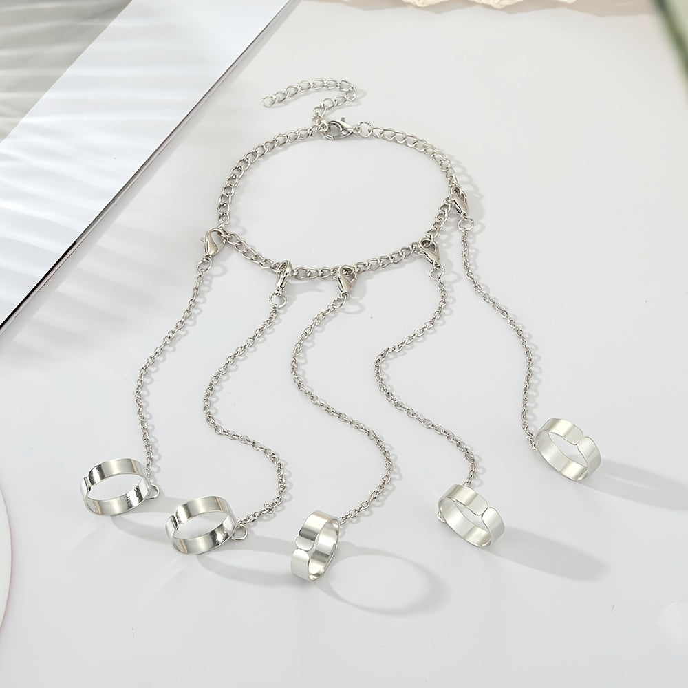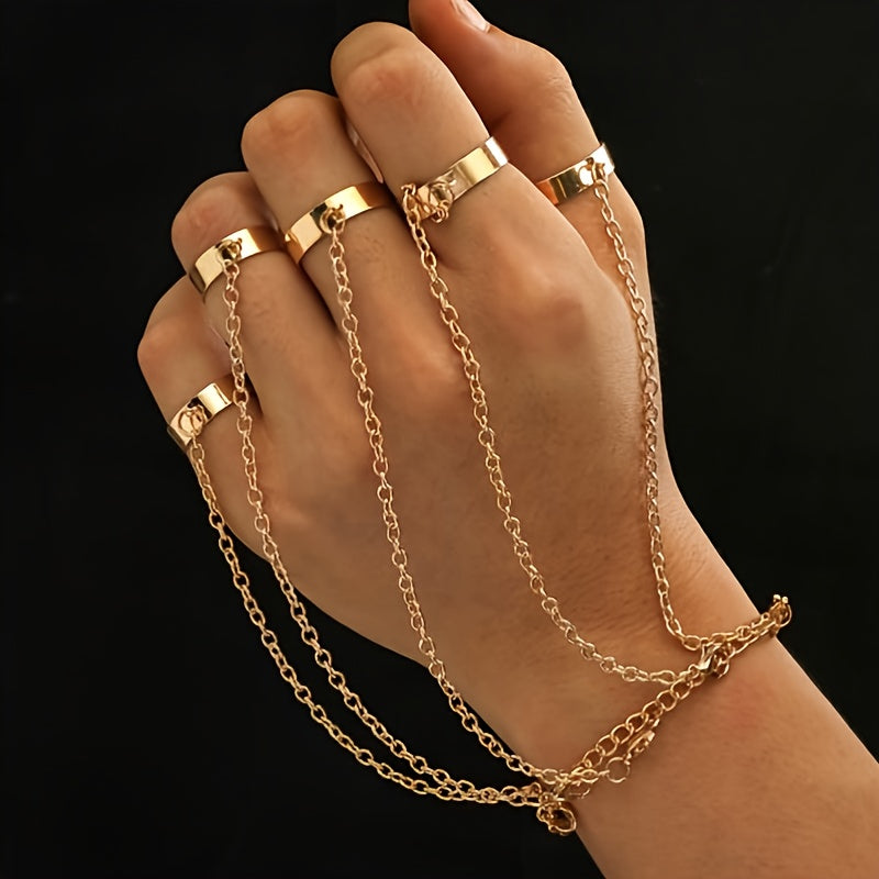 This vintage Gothic punk wrist bracelet features a unique design with a finger ring chain. It is perfect for couples and makes a great gift for special occasions.