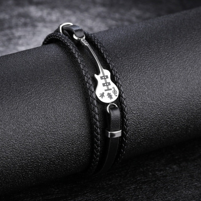 Enhance your style with this classic leather bracelet featuring a unique guitar design. Perfect for music lovers and fashion enthusiasts.