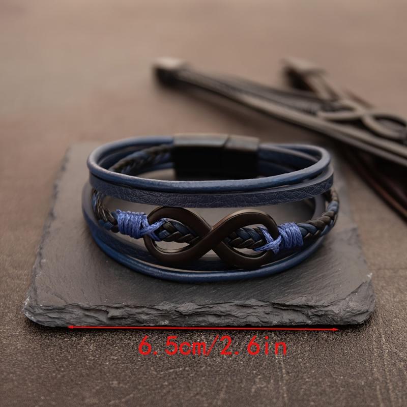 This stylish bracelet features an infinity symbol detail and a convenient magnetic clasp. Made from high-quality PU leather, perfect for everyday wear.