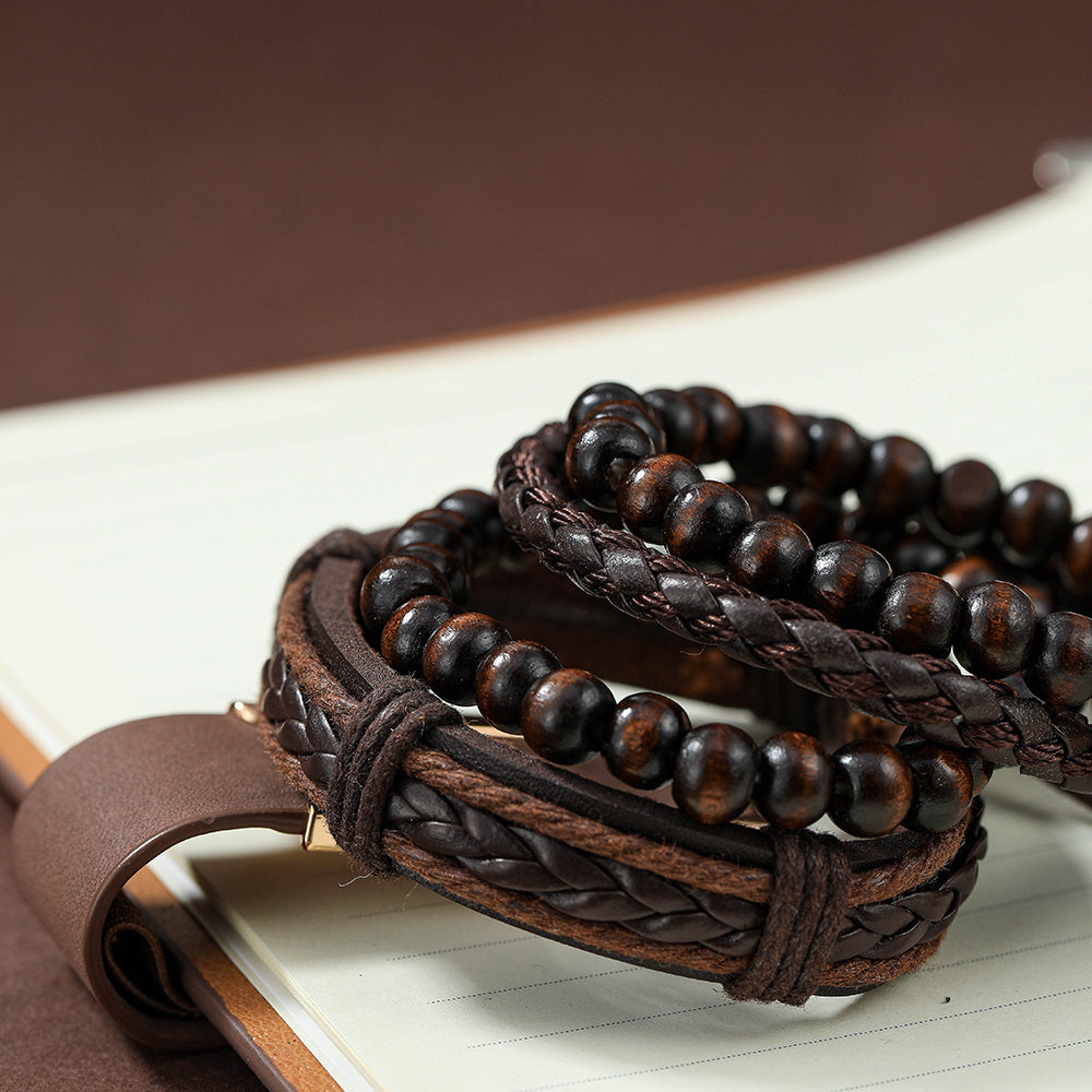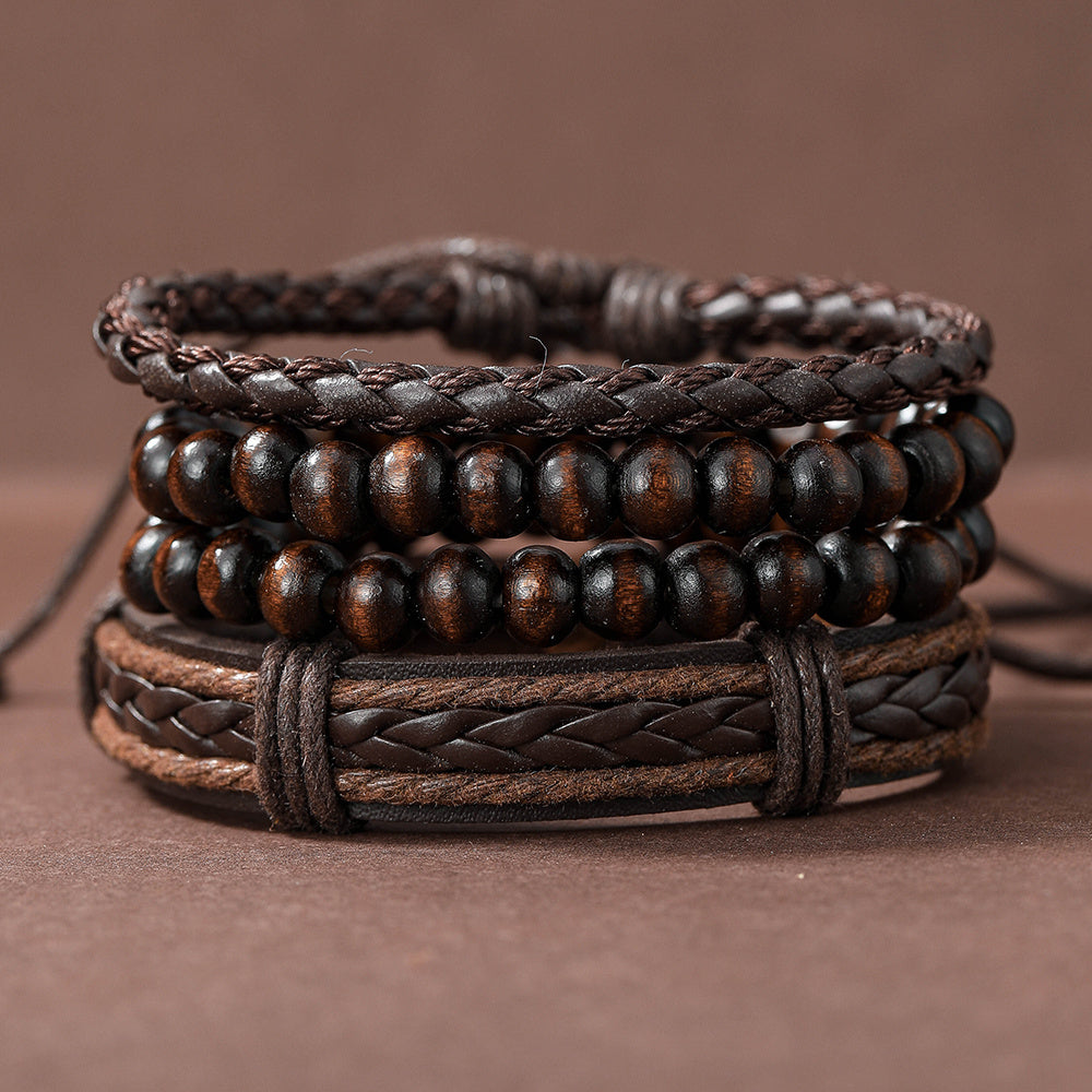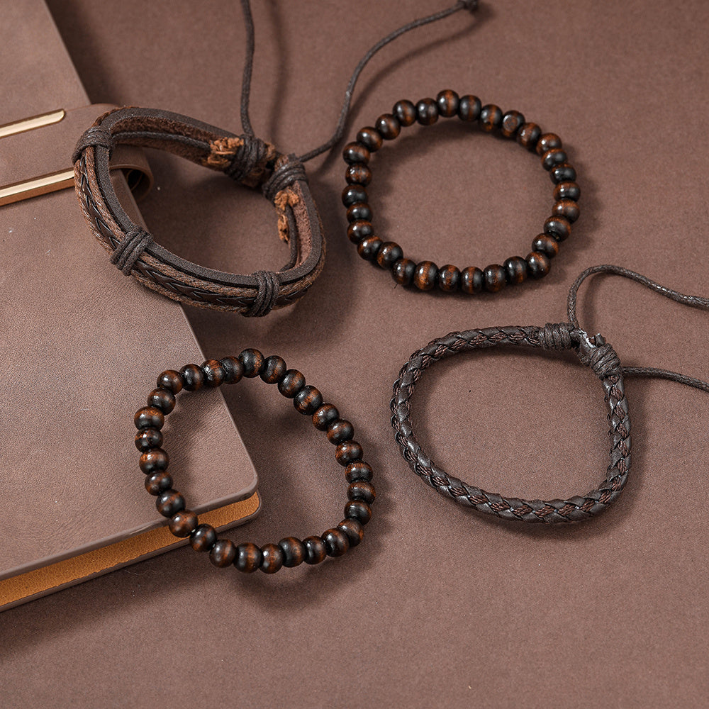 Elevate your style with this set of 4 vintage leather bracelets. Each bracelet features a unique woven design for a rugged yet sophisticated look.
