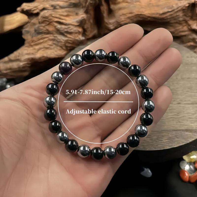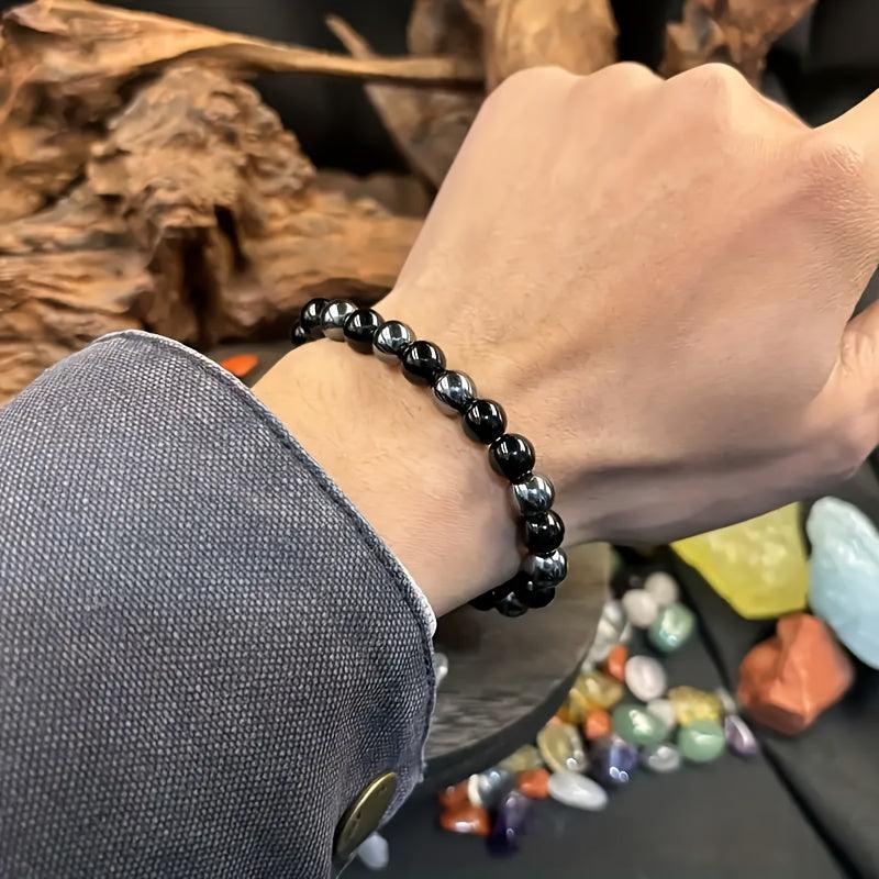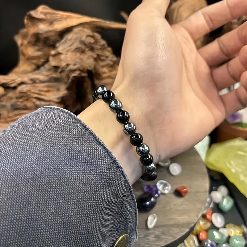 Enhance mental clarity, focus, and concentration with this durable bohemian bracelet featuring uncoated natural stone beads and golden accents in a concentric circle pattern. Perfect for casual wear.