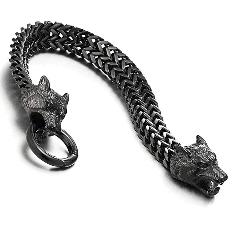 This stylish bracelet features double wolf head design, perfect for hip hop fashion. Great as a holiday or birthday gift for boyfriends.