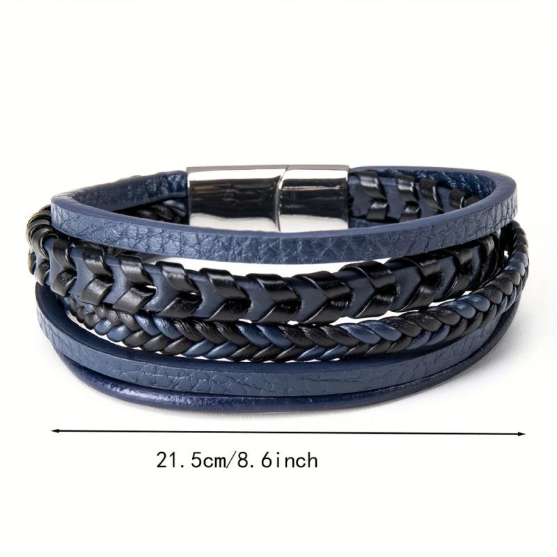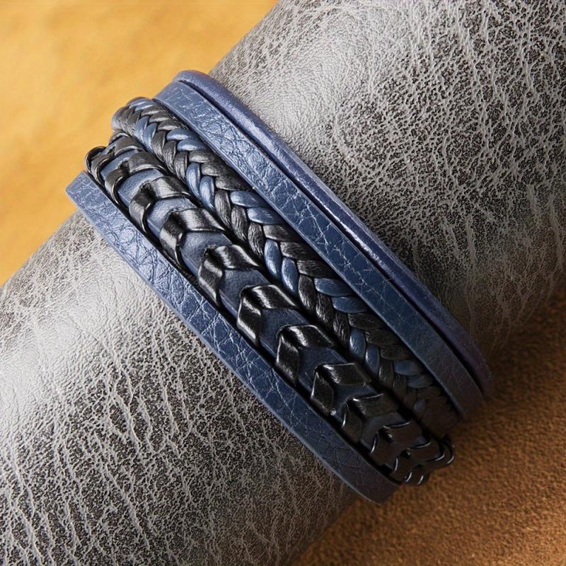 This retro PU leather bracelet features a braided design and magnetic buckle closure. Perfect for daily wear and adding a stylish touch to your outfit.