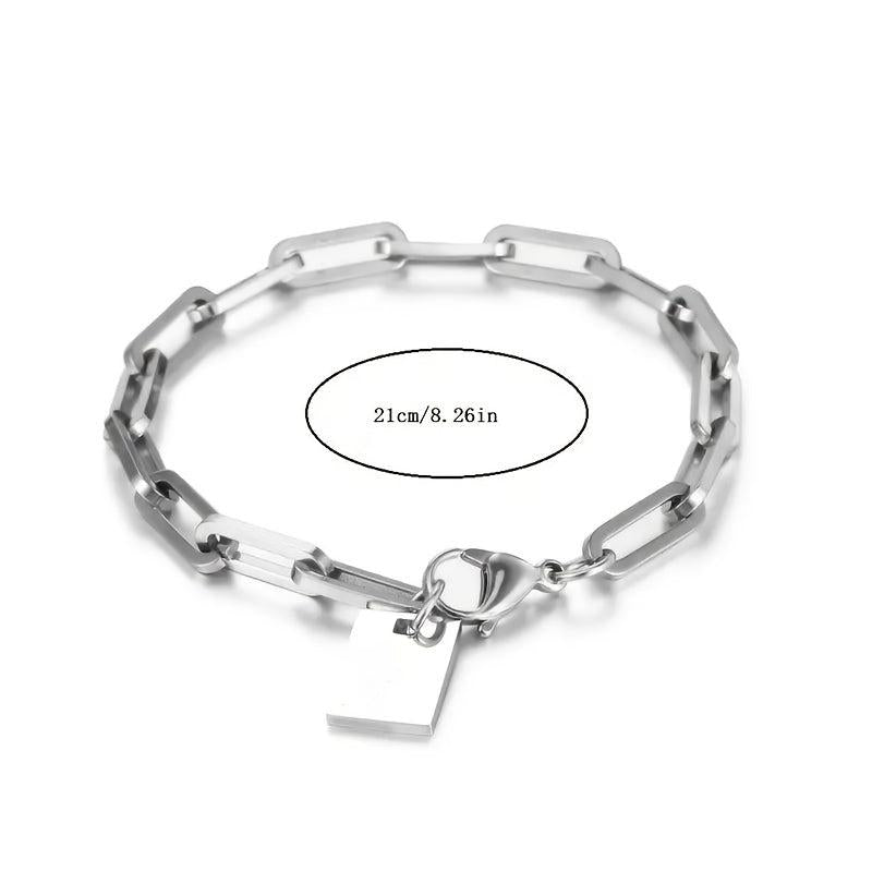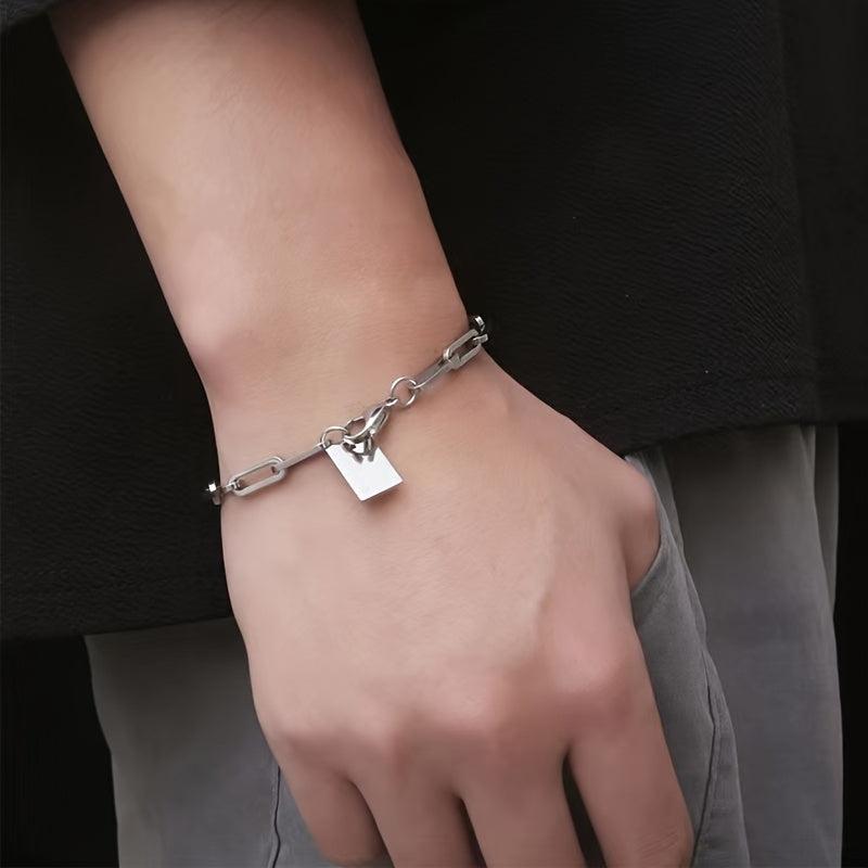 This stainless steel bracelet is a stylish and durable accessory for men. It features an adjustable design with an engravable gift tag, making it a versatile piece suitable for daily wear, parties, graduation, or teacher appreciation.